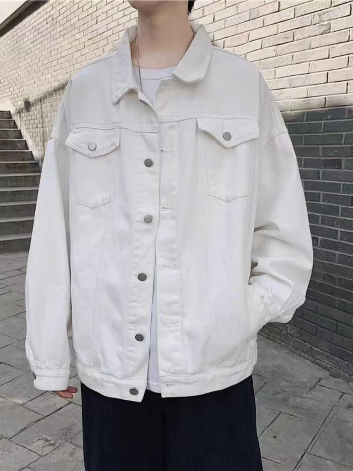 جاكيت دنيم أبيض نقي للجنسين، تصميم فضفاض لفصلي الربيع والخريف، أسلوب ملابس العمل البسيط، موضة كورية راقية للرجال والنساء