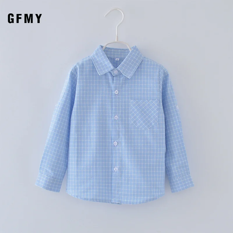 GFMY ربيع جديد الأطفال قمصان الموضة منقوشة بدوره إلى أسفل طوق الفانيلا النسيج الفتيان قمصان ل 3-10 سنة ملابس أطفال