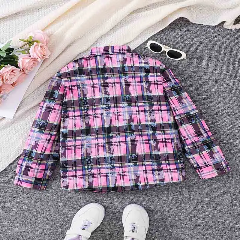 قميص منقوش للفتيات ، لطيف وكاجوال ، متعدد الاستخدامات ، ياقة ، زر لأسفل ، أميرة ، يومي ، أزياء حفلات أعياد الميلاد ، الخريف والشتاء