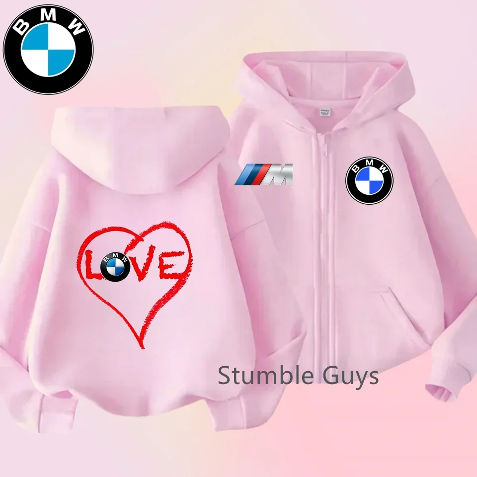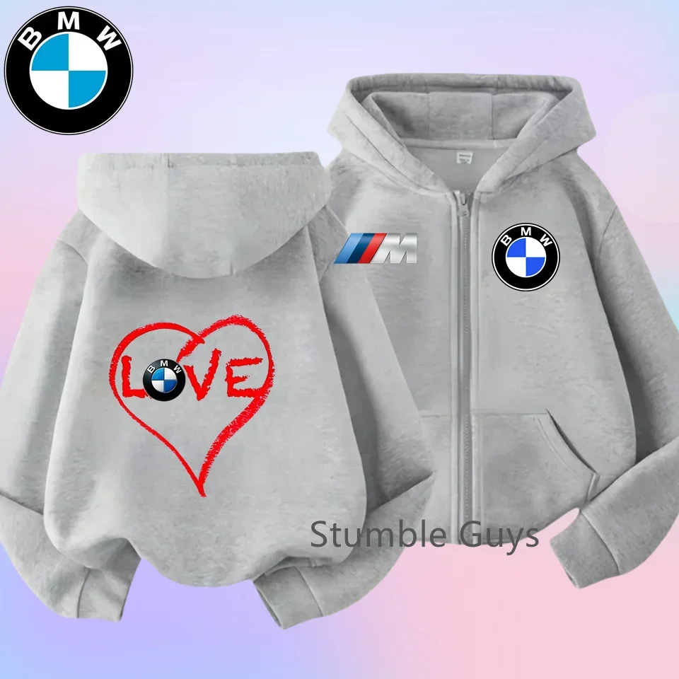 BMW الاطفال قلنسوة بسحاب الخريف ملابس الشتاء الفتيان الفتيات الدافئة عارضة البلوز دراجة نارية بارد ارتداء معطف