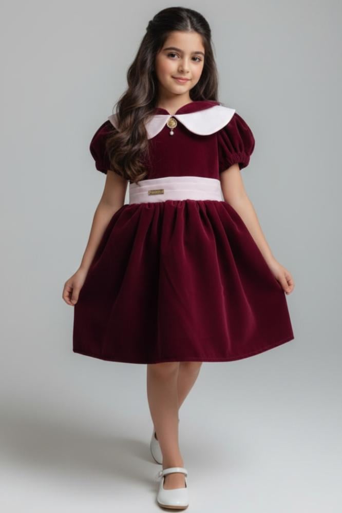 فستان بناتي سهرات أبيض بفراشات ذهبية S01150