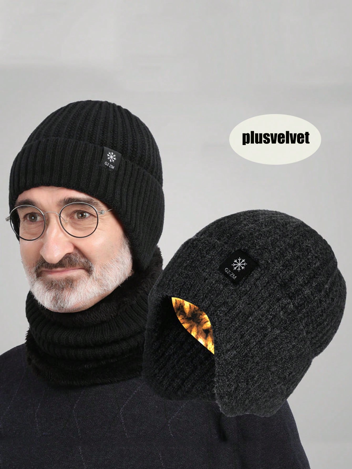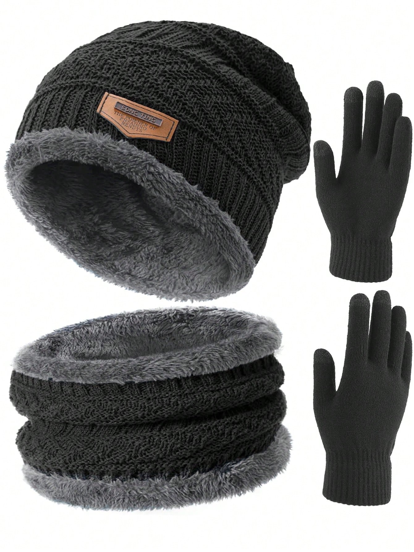 مجموعة 3 قطع من قبعة الشتوية المحبوكة، وشاح دافئ للرقبة، وقفازات شاشة اللمس مبطنة بالفليس للرجال وال