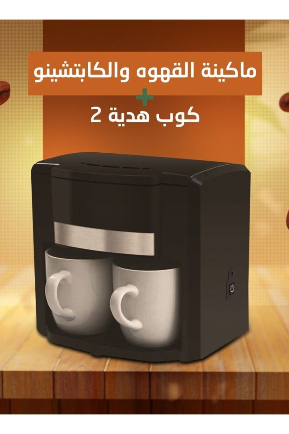ماكينة قهوة مع كوبين من البورسلين، 500 واط، لون أسود