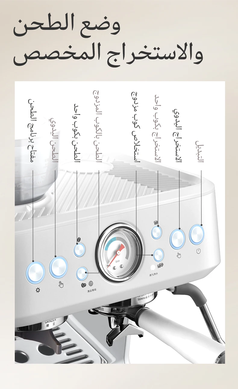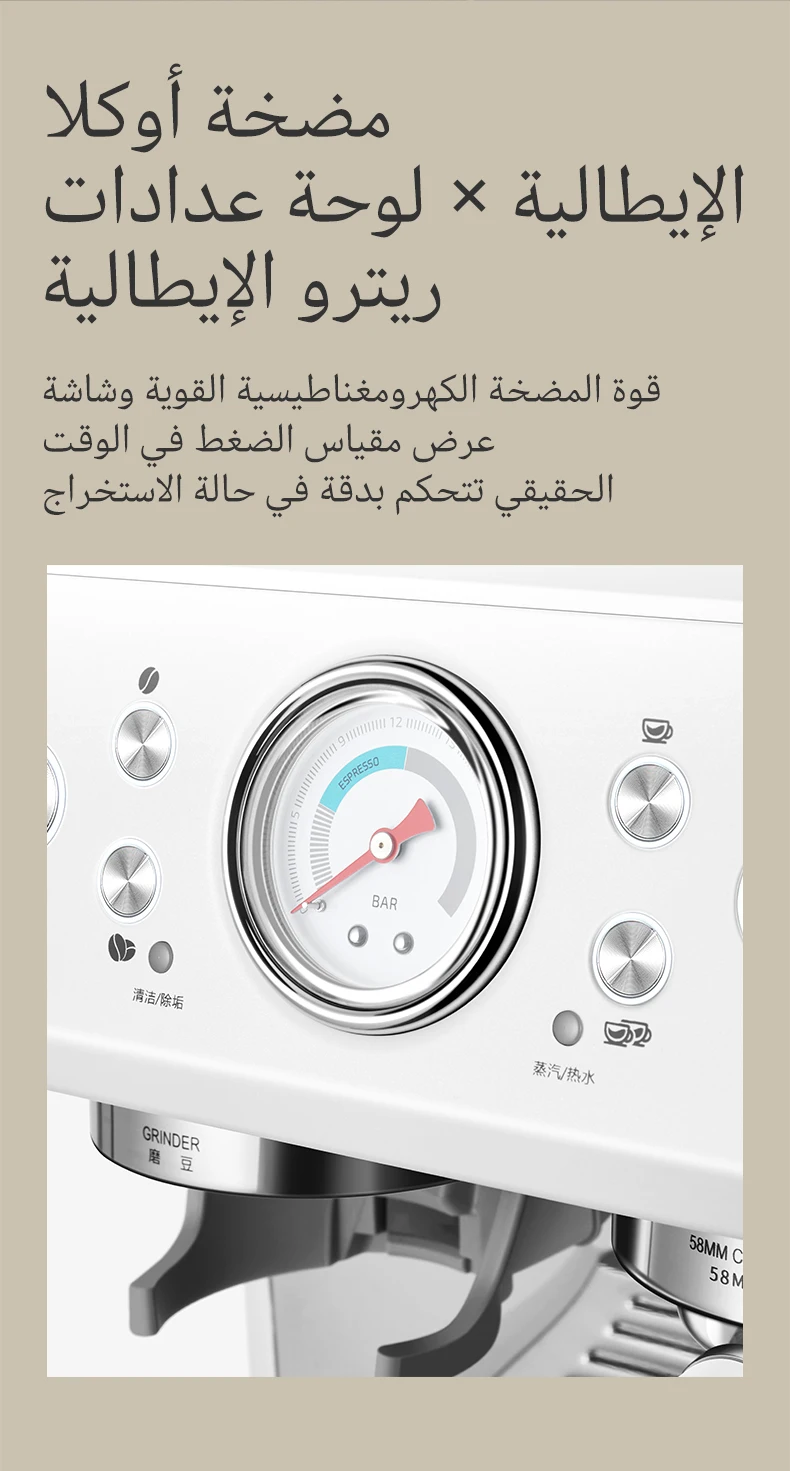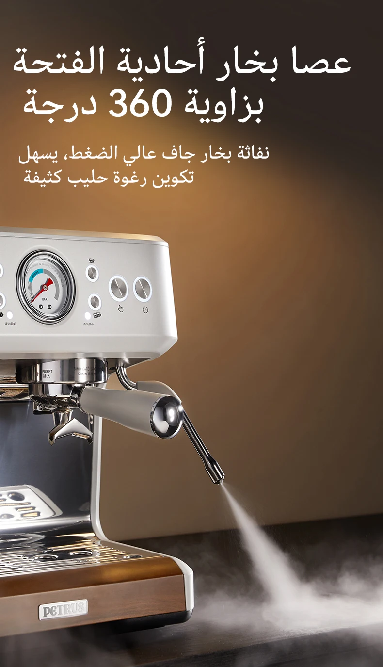 ☕Acc تركيبة حليب ميكروفوم يدوية: يسمح لك أداء عصا البخار القوية بتسليم حليب ميكروفوم الملمس الذي يعزز النكهة ويمكّن من ابتكار فن اللاتية.