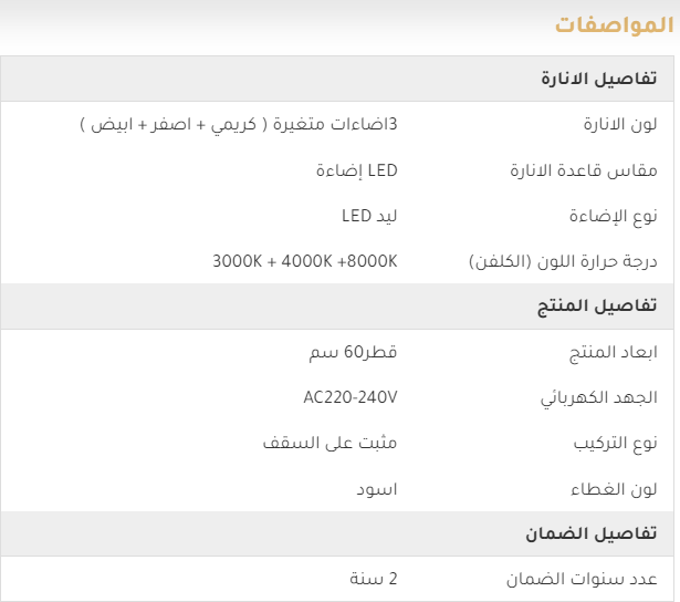 ثريا ليد مودرن اسود مع 3 اضاءات مقاس 60 سم