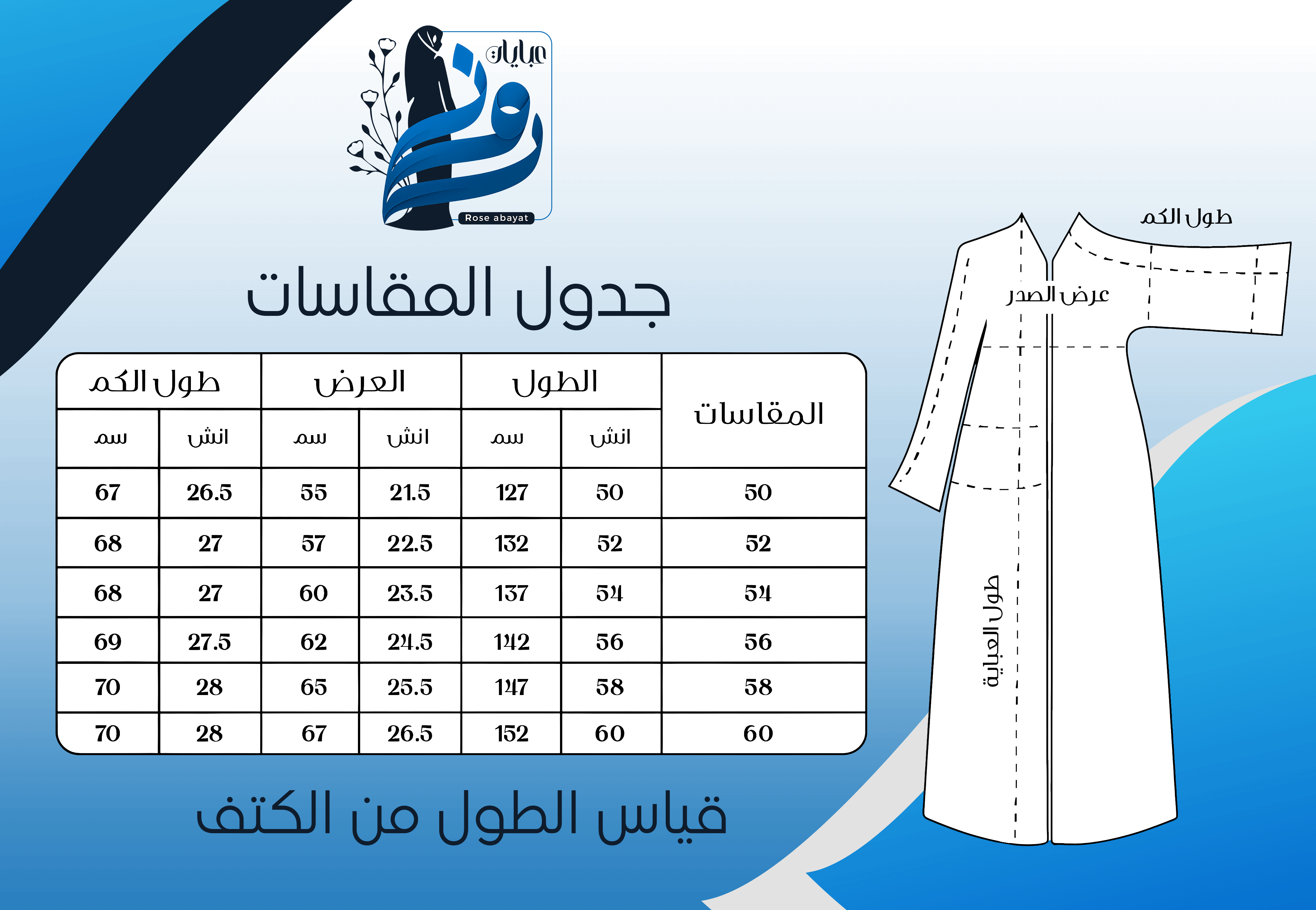 المقاسات المتوفرة: 50، 52، 54، 56، 58، 60.