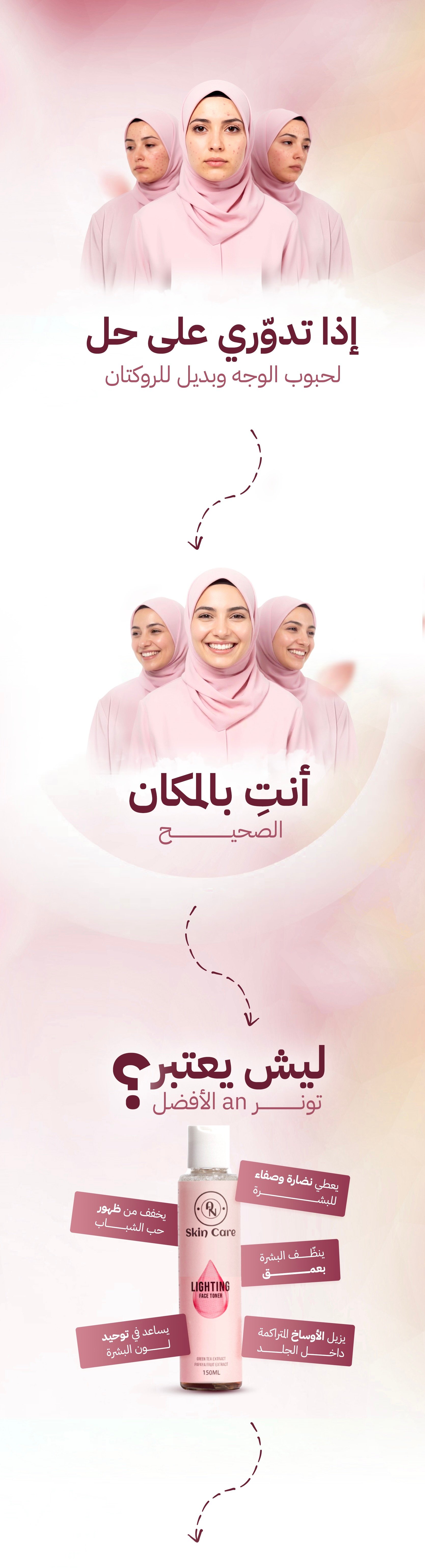 ملاحظة : عند النوم! بالإمكان ترك التونر على الوجه دون الغسل والنوم به ثم غسله صباحًا وترطيبه بعد ذلك.