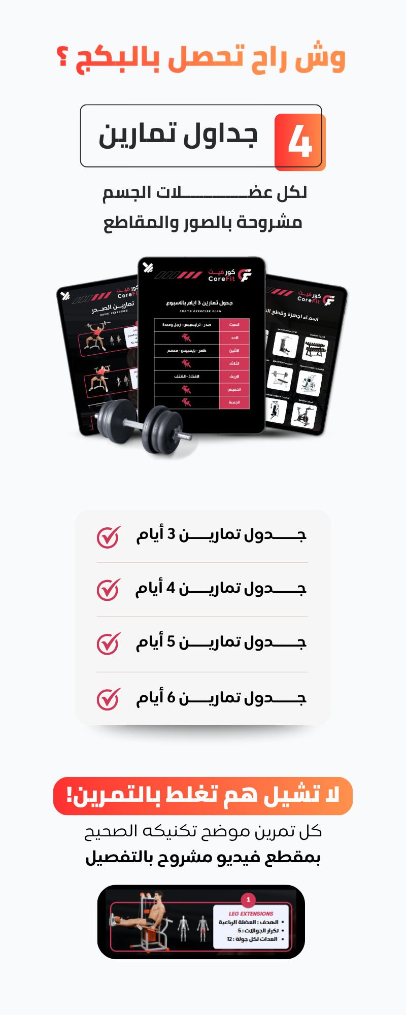 81 ر.سمرحبًا بك في CoreFit | كور فيت! نوفر لك جداول تمارين رياضية لبناء العضلات وتحقيق أهدافك بفعالية، مع خطط تغذية متوازنة تدعم تطور جسمك. كل شيء محسوب ومدروس لتحقيق أفضل النتائج بسهولة! 💪🔥