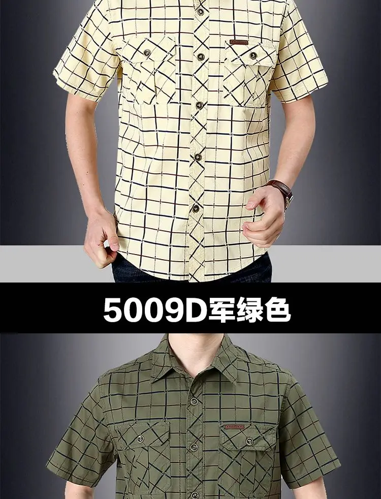 - العسكرية الرجال قصيرة الأكمام القطن منقوشة قميص الصيف جديد الشارع الشهير الذكور الملابس الموضة مآخذ واحدة جيب بلوزات فضفاضة غير رسمية