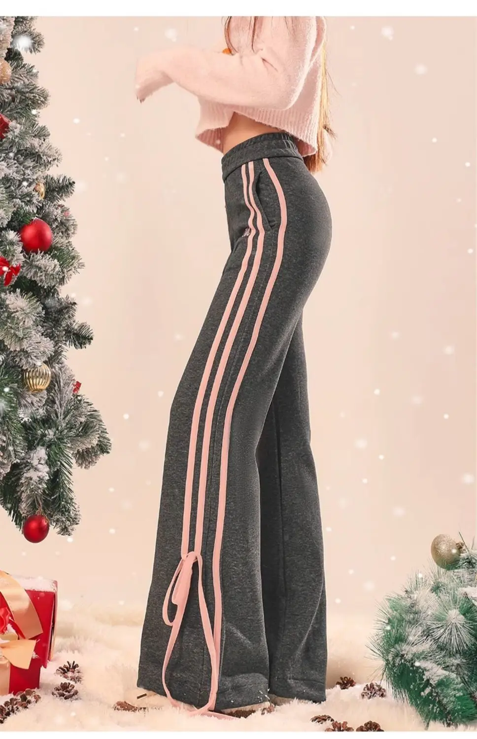سراويل رياضية رمادية غير رسمية بخصر عالٍ للنساء ، سراويل صغيرة متوجة ، قوس برباط مرقع ، أزياء كورية ، سراويل متعددة الاستخدامات ، ربيعية