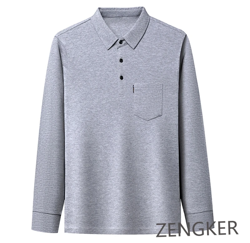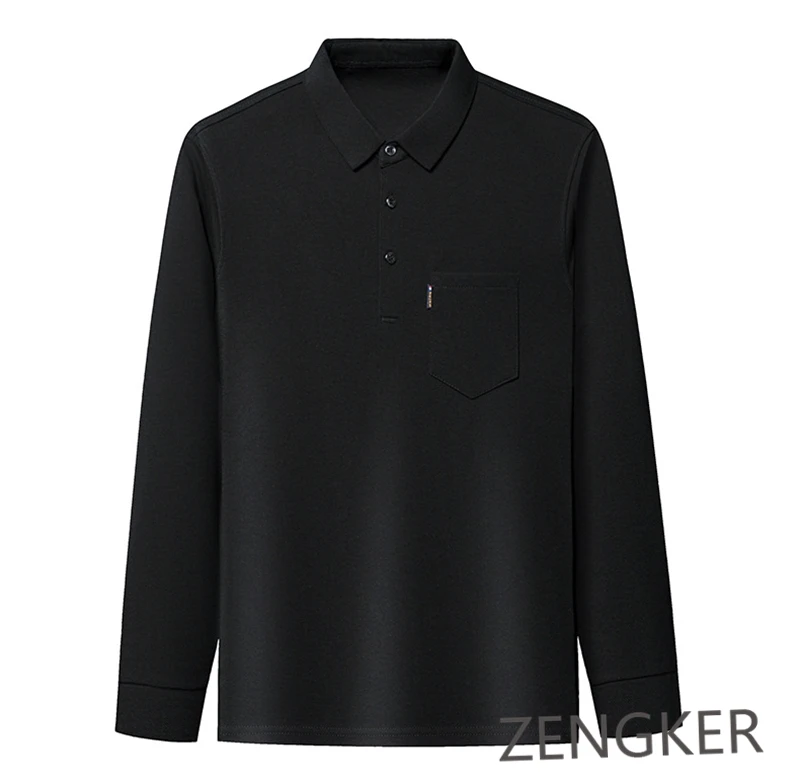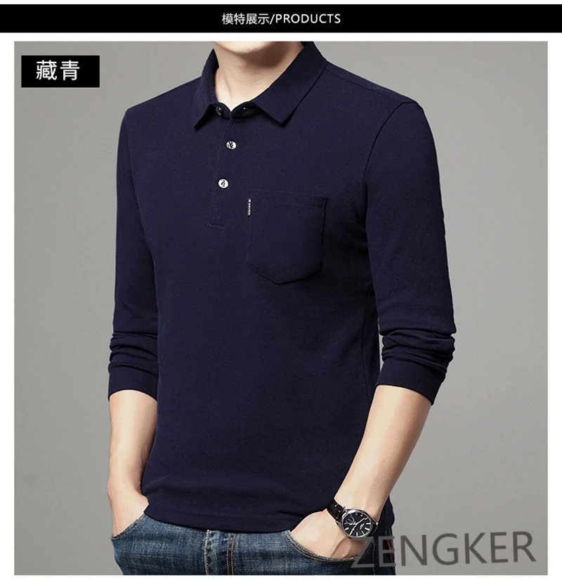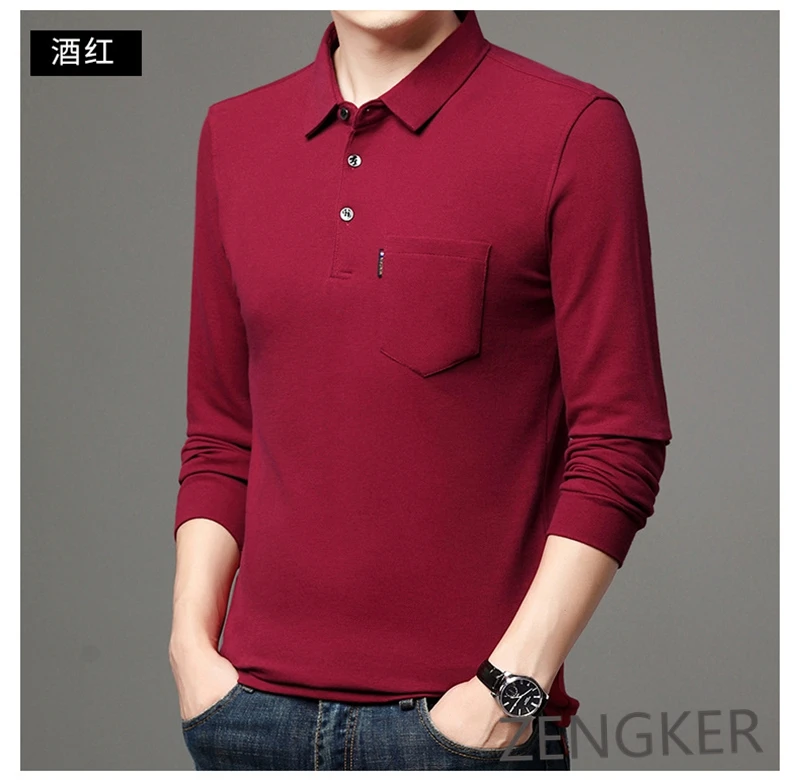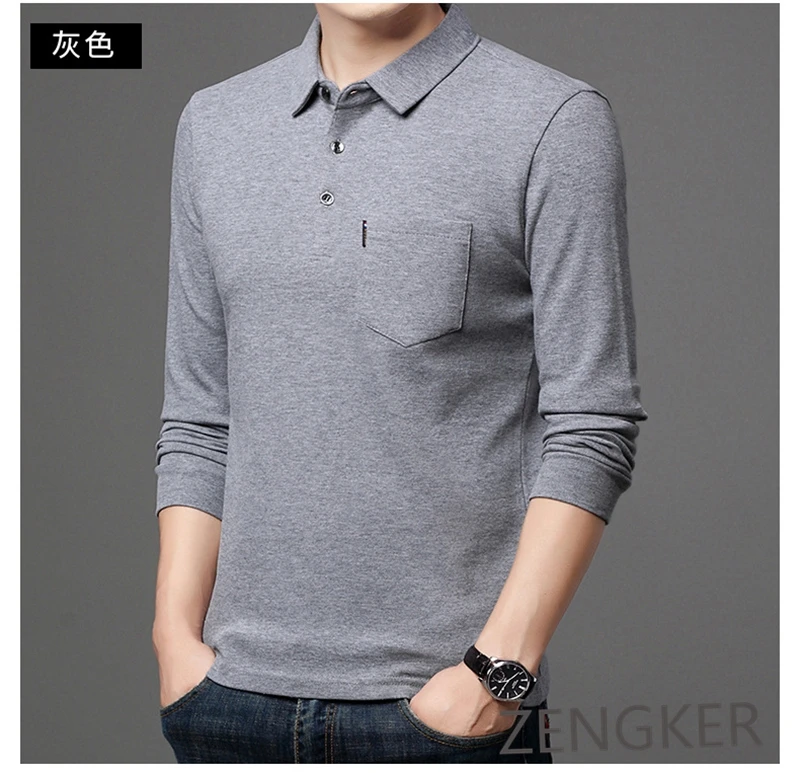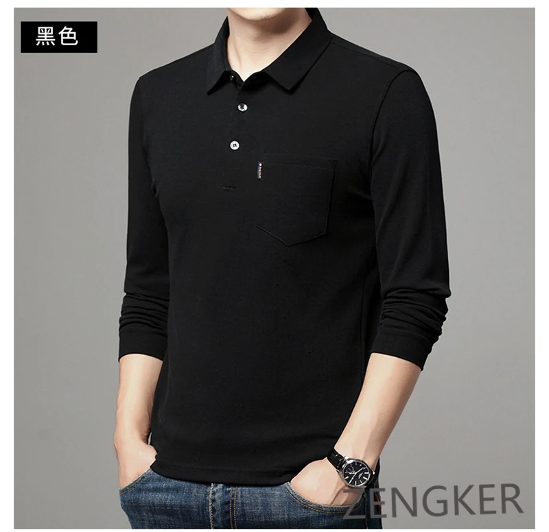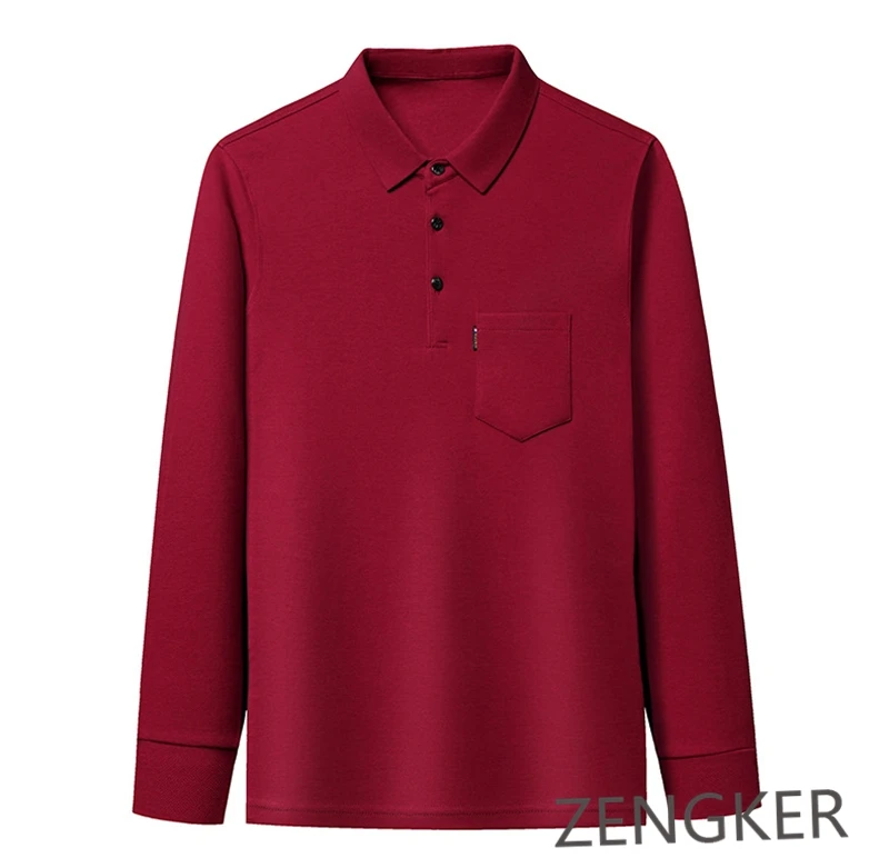 - الرجال حجم كبير ربيع الخريف جيب حقيقي كم طويل قميص بولو منتصف العمر أبي عادية تي شيرت بياقة 140 كجم 8xl