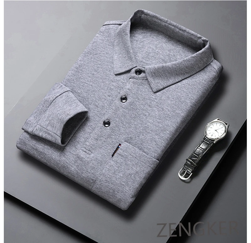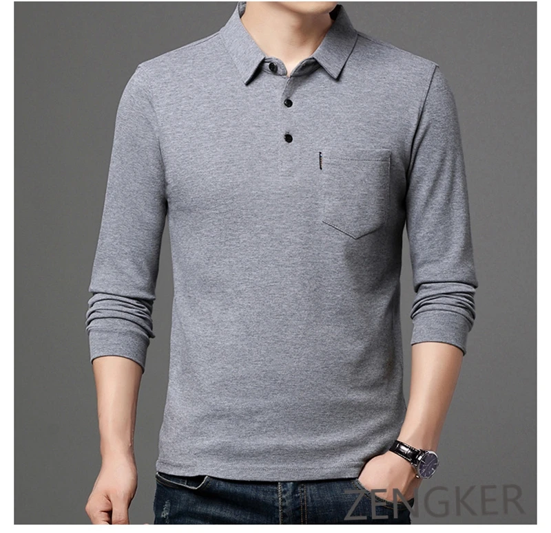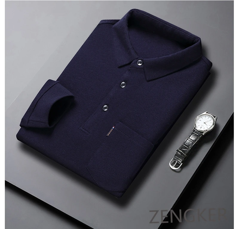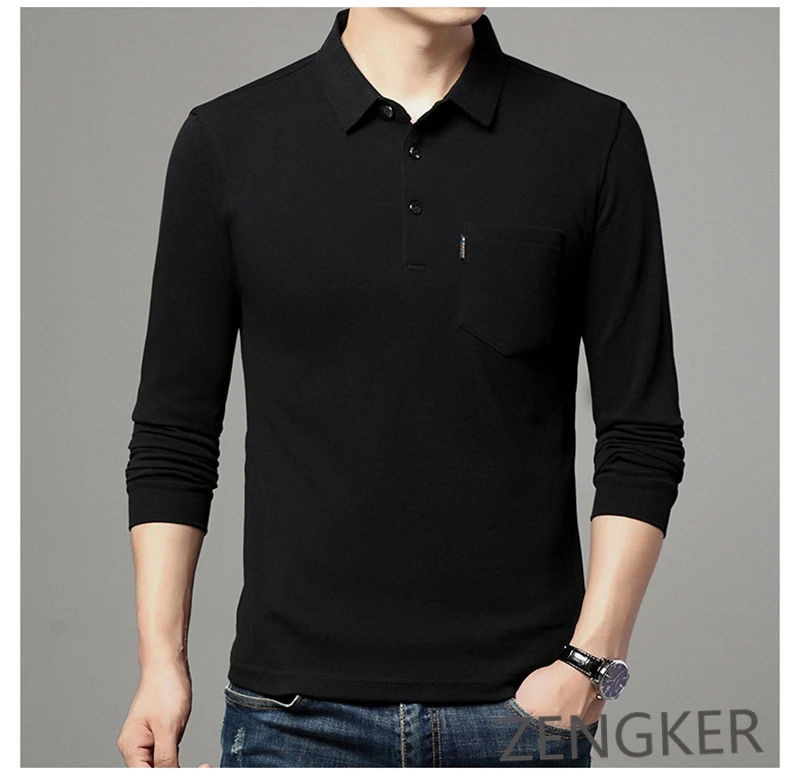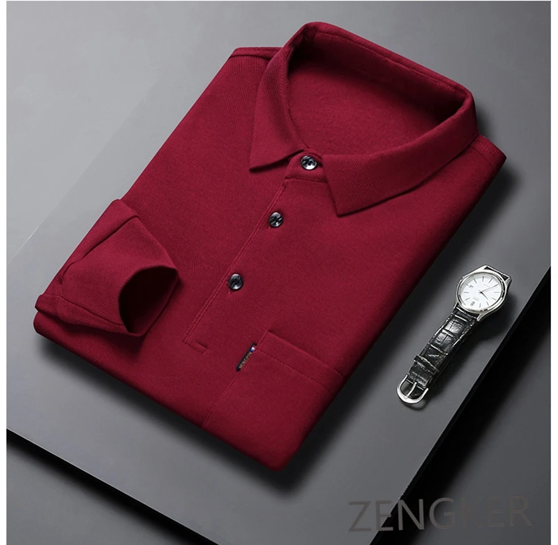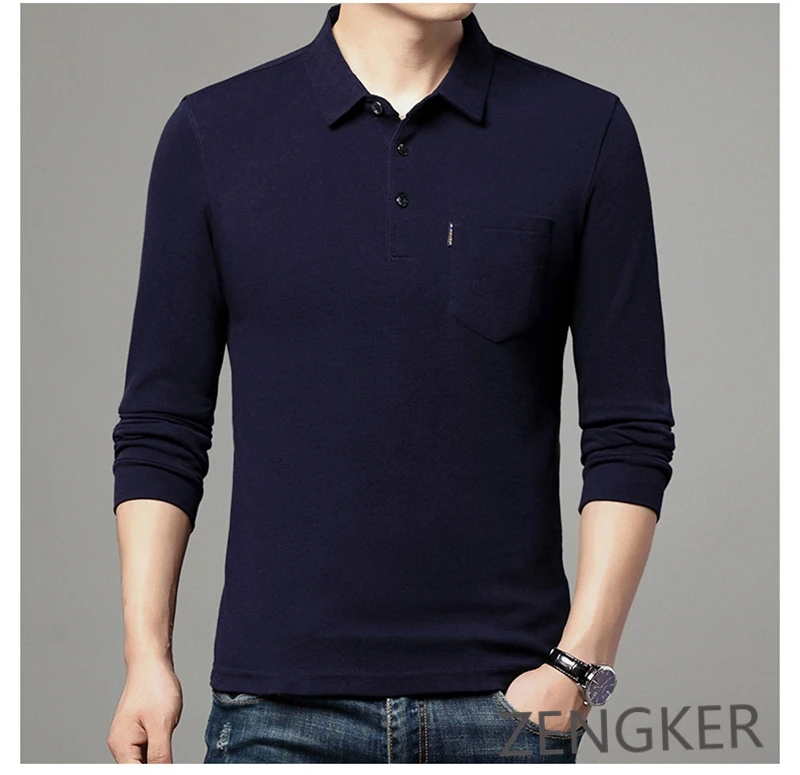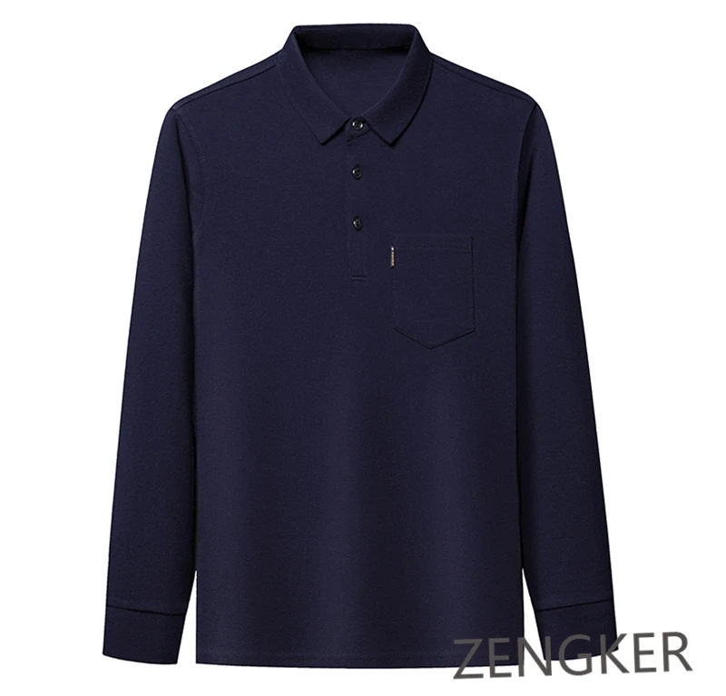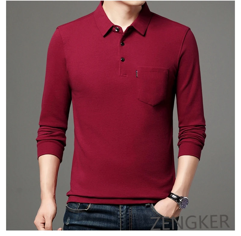 - الرجال حجم كبير ربيع الخريف جيب حقيقي كم طويل قميص بولو منتصف العمر أبي عادية تي شيرت بياقة 140 كجم 8xl