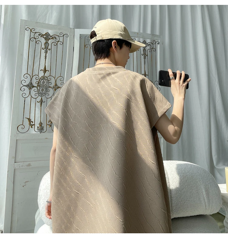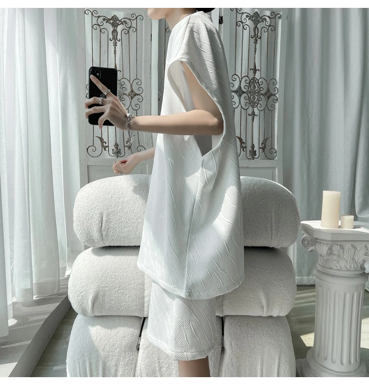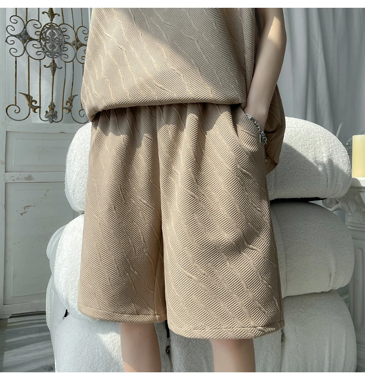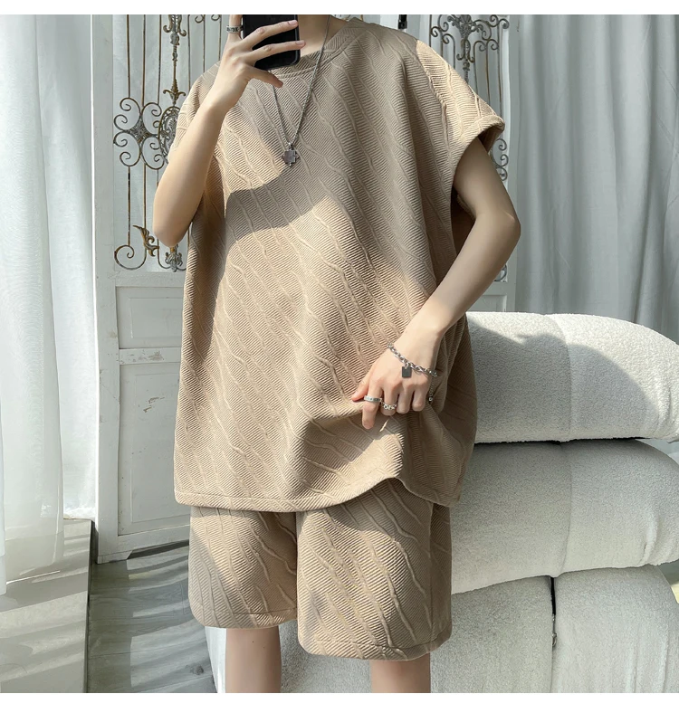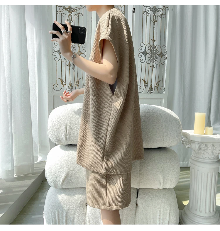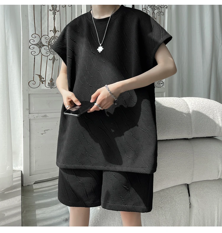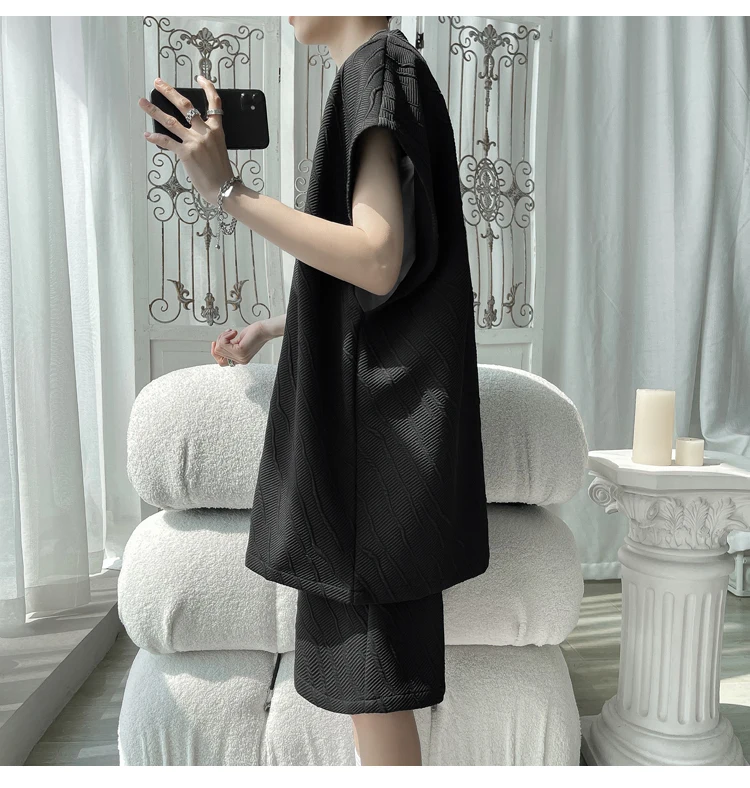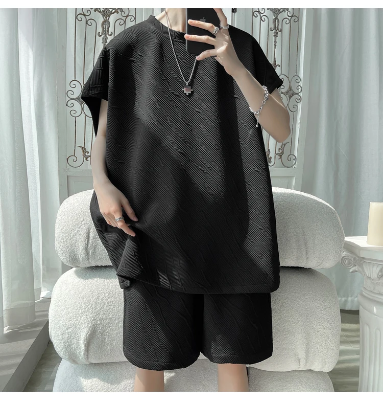 - أطقم تي شيرت وسراويل جاكار كاجوال فضفاض للرجال ، جودة عالية ، ملابس كورية فاخرة ، مقاس كبير 5 × لتر ، موضة صيفية