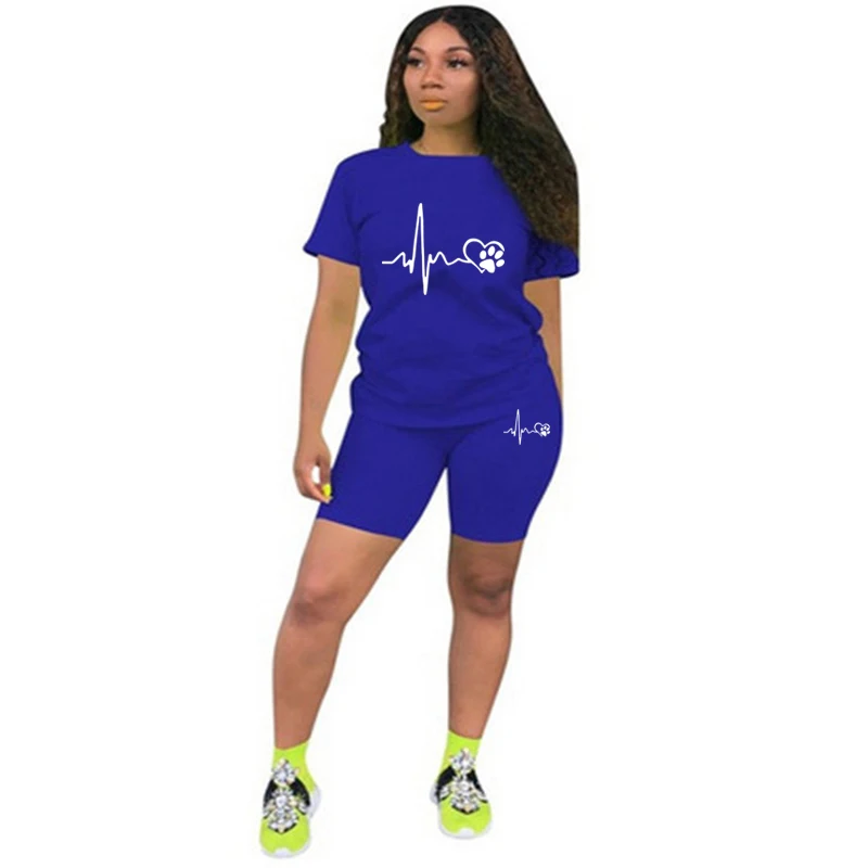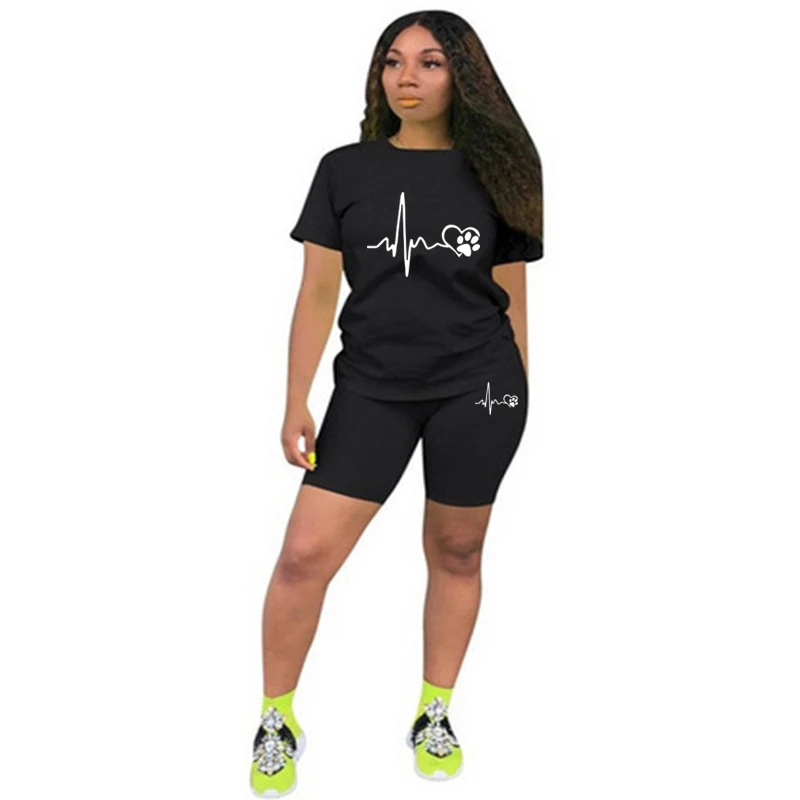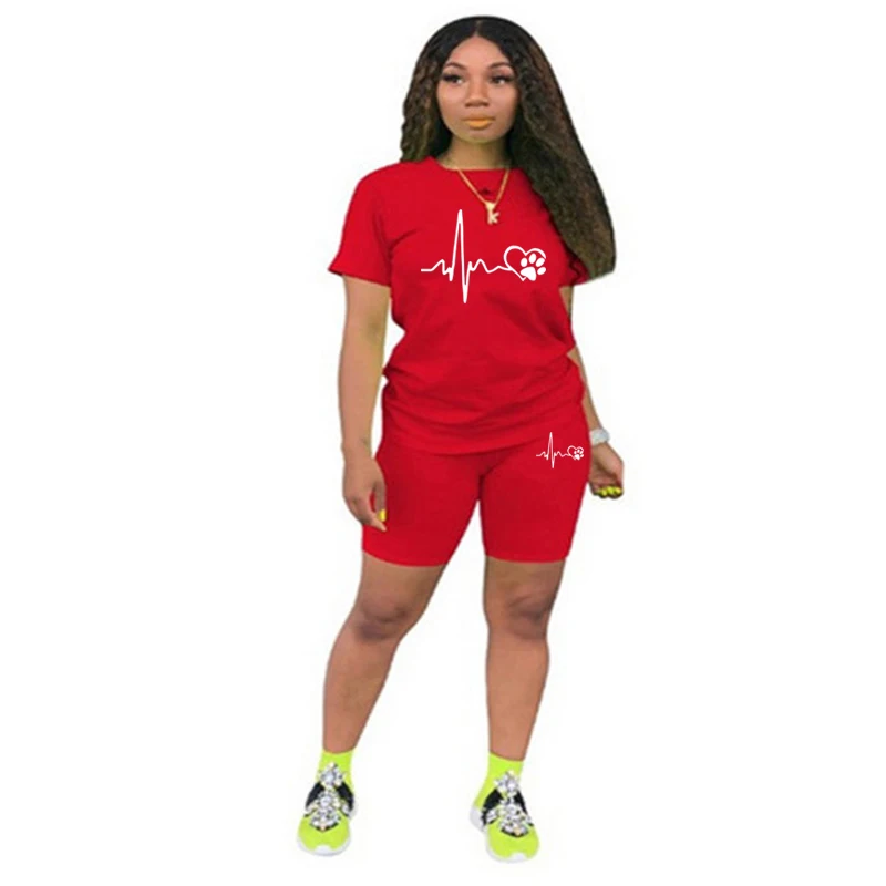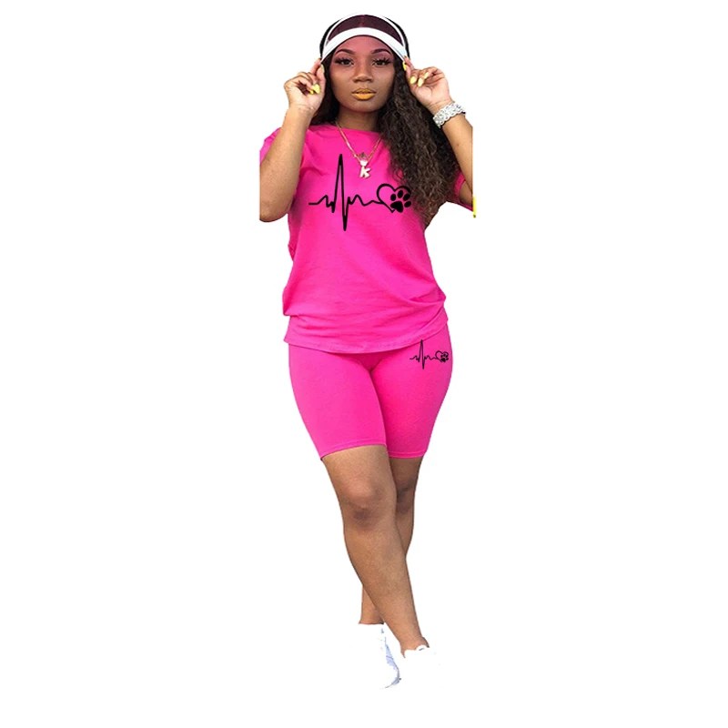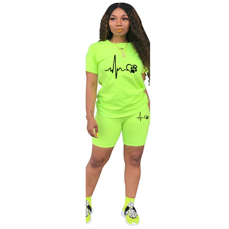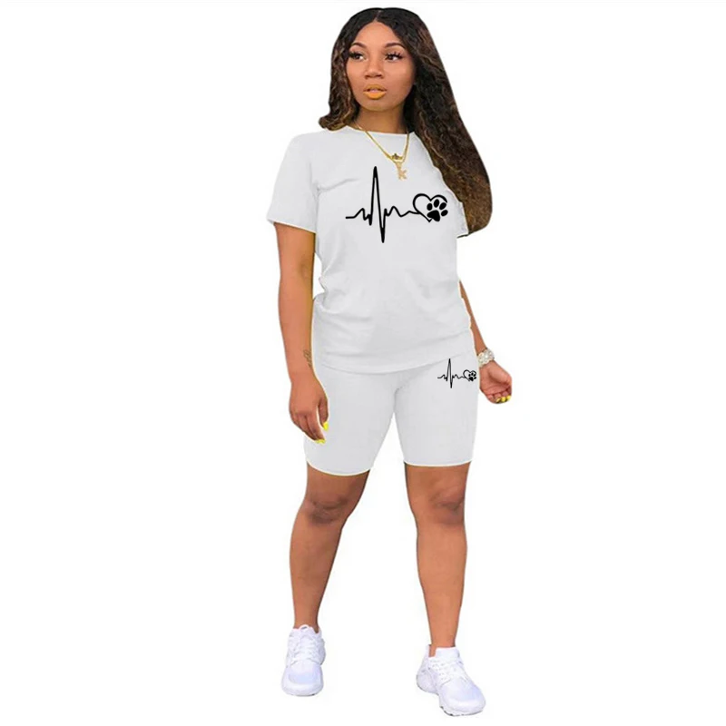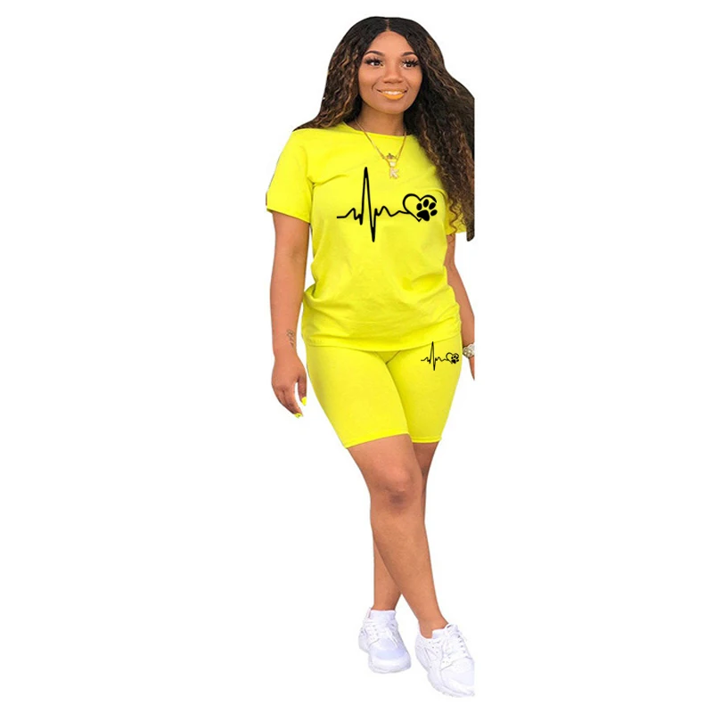 بدلة رياضية من قطعتين للنساء ، ملابس غير رسمية ، ليغنغ رياضي ، الركض والمطابقة اليومية ، تي شيرت بدلة ، أطقم قصيرة ، الصيف ،