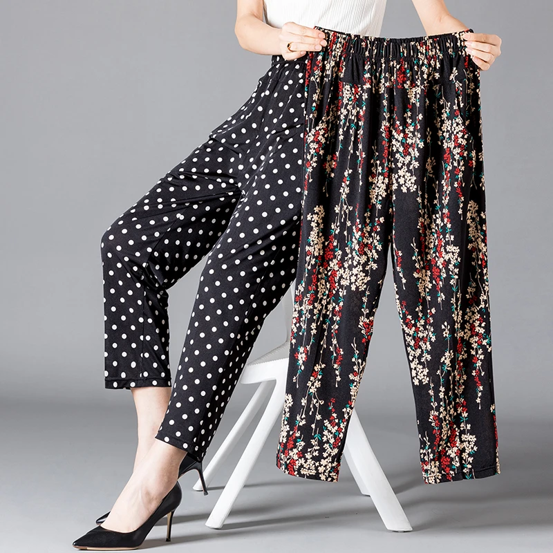 - XL-8XL الصيف النساء الحريم السراويل غير رسمية عالية الخصر السراويل المطبوعة مرونة الخصر منتصف العمر النساء السراويل الصيف قيعان