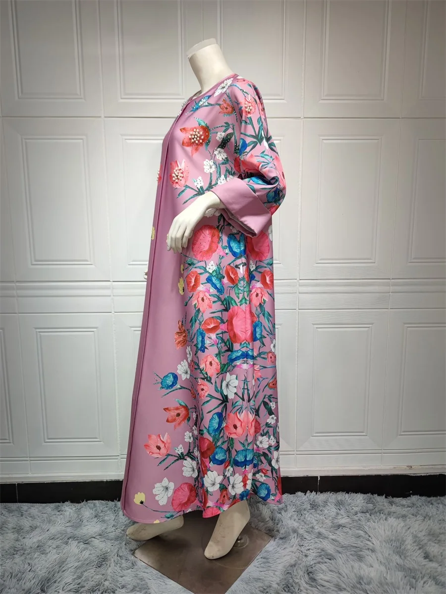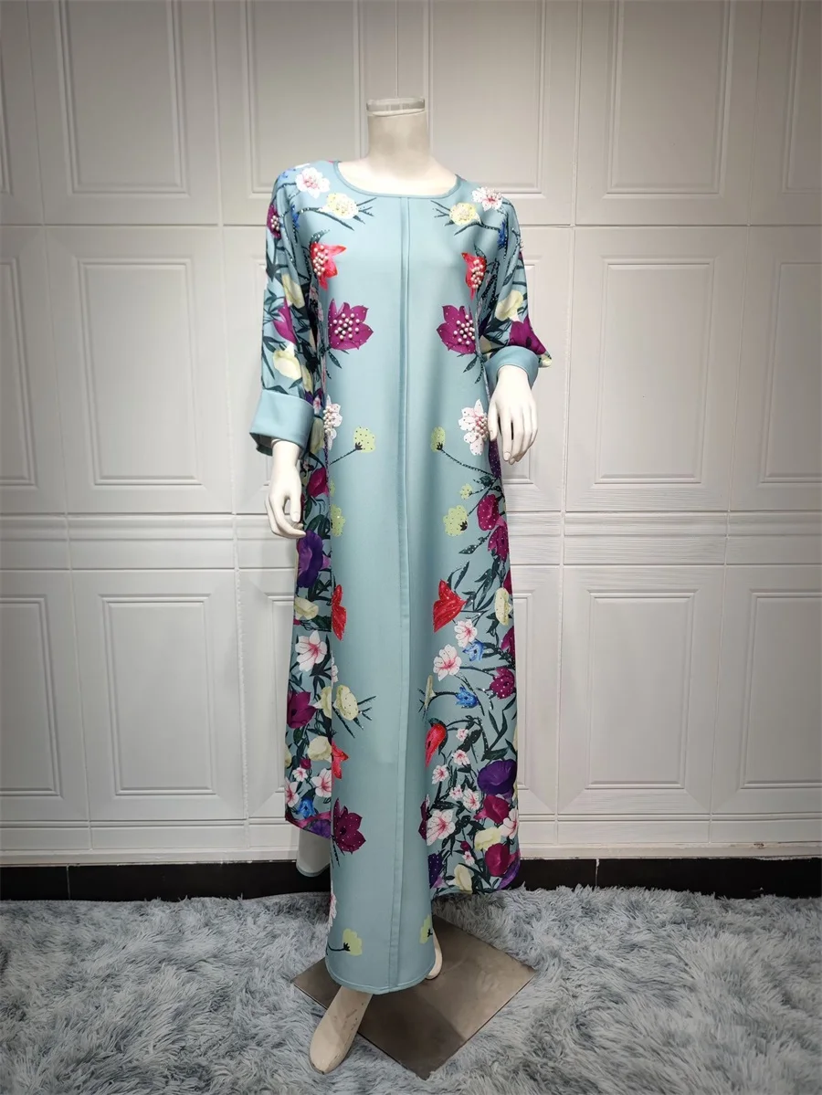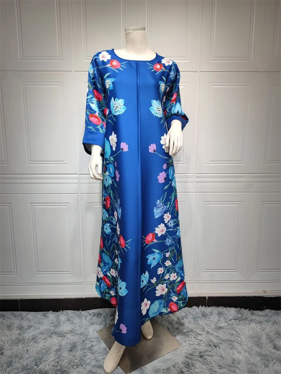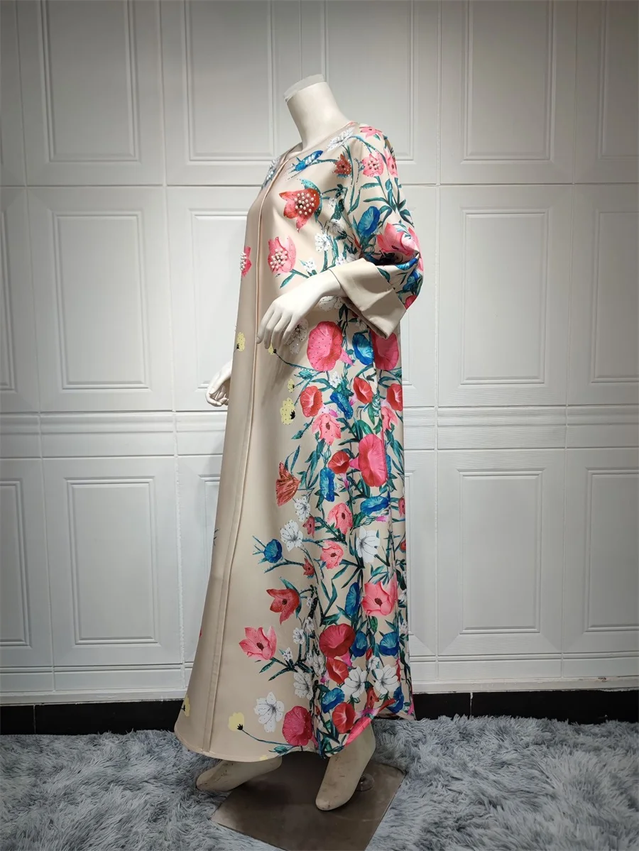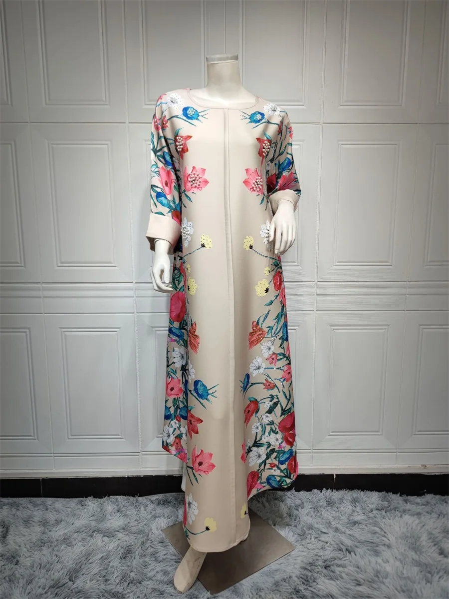 فساتين نسائية كويتية جلابية دبي فاخرة ومطرزة بالخرز مطبوعة بالورود لحفلات الراقصة المرأة المسلمة عباية قفطان مغربي