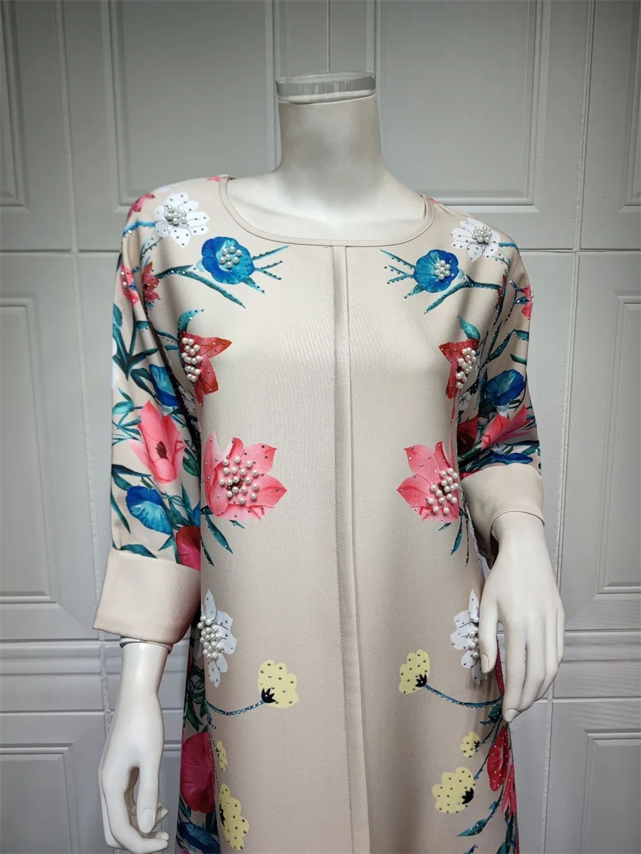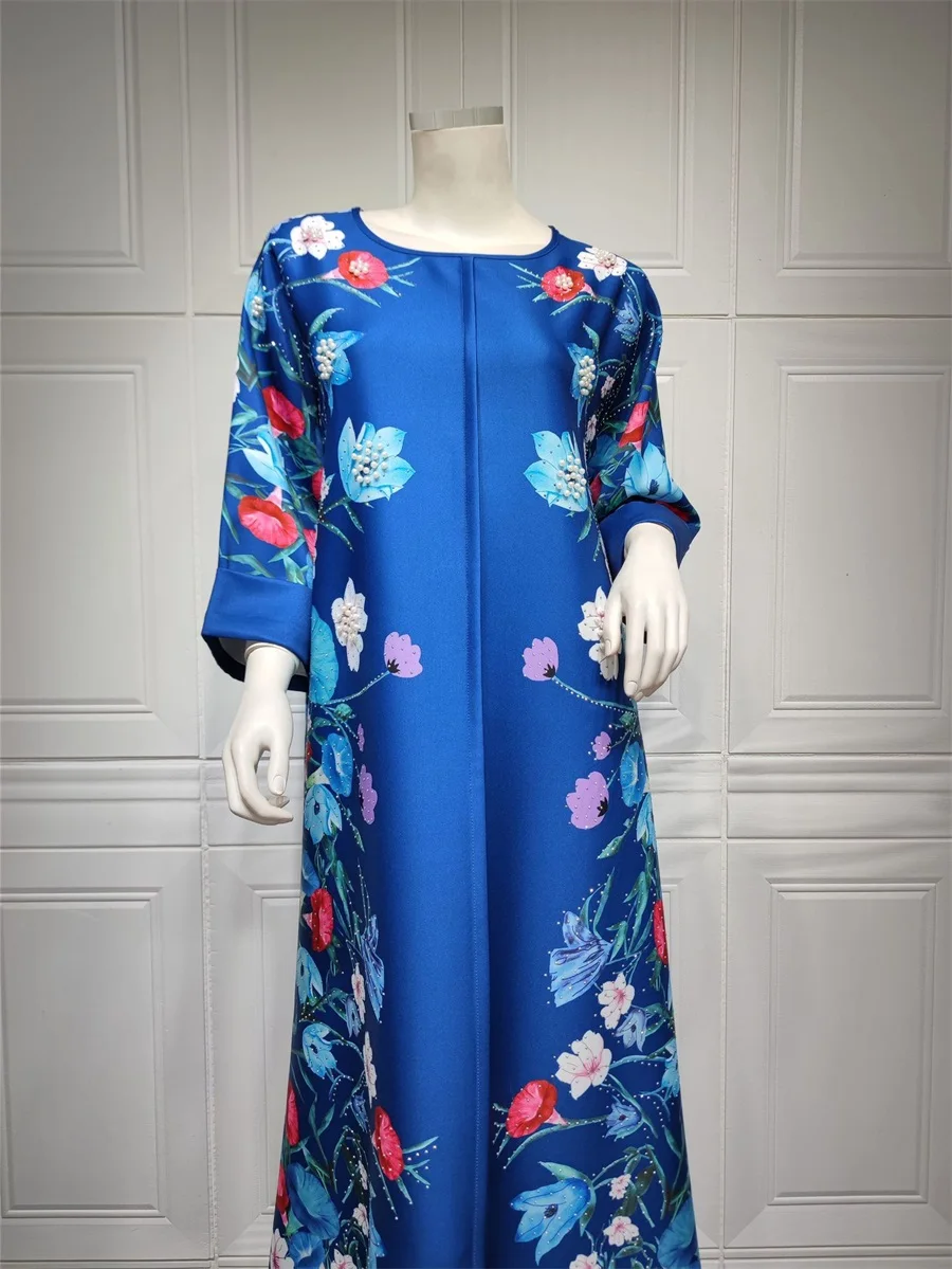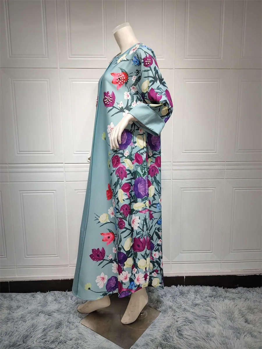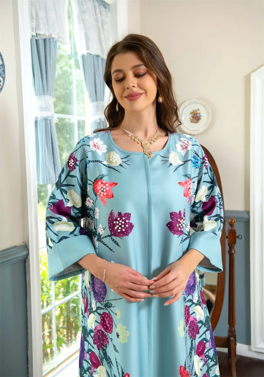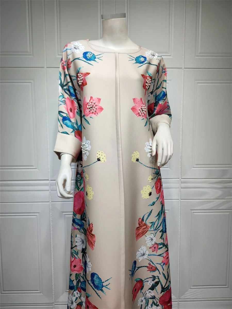 فساتين نسائية كويتية جلابية دبي فاخرة ومطرزة بالخرز مطبوعة بالورود لحفلات الراقصة المرأة المسلمة عباية قفطان مغربي