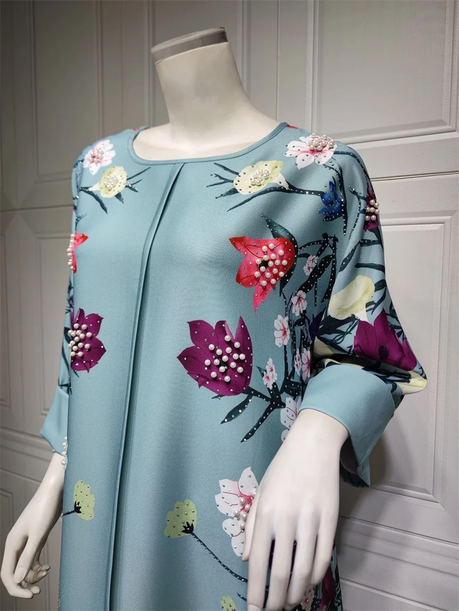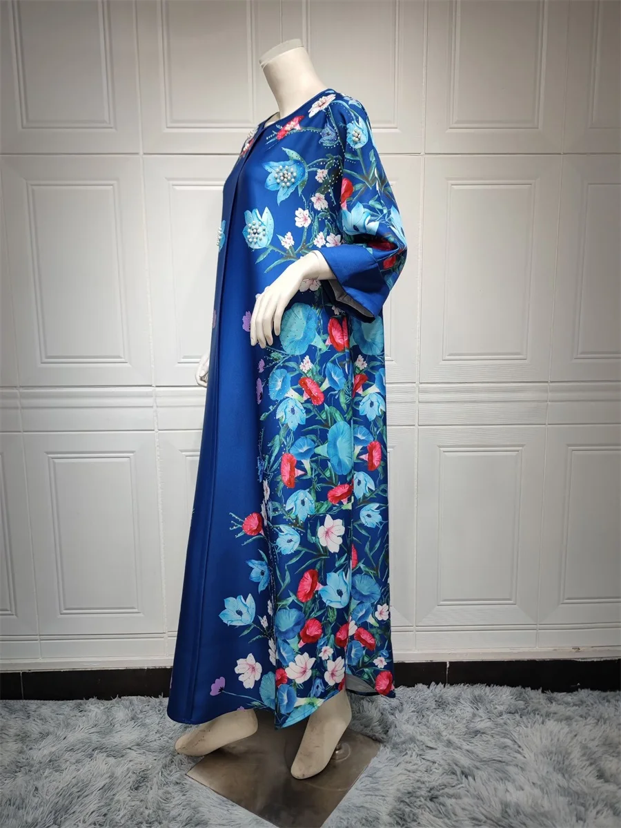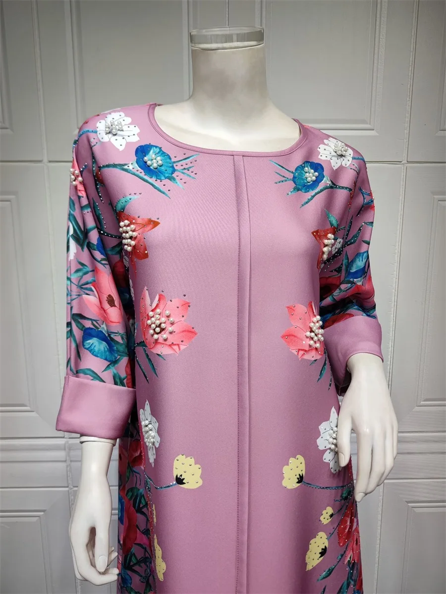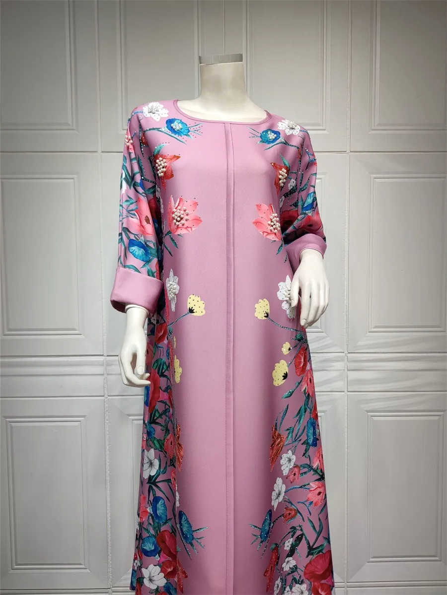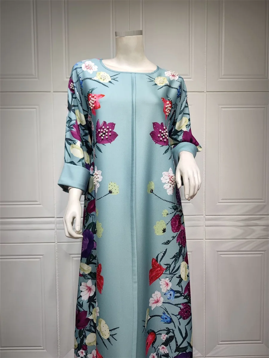فساتين نسائية كويتية جلابية دبي فاخرة ومطرزة بالخرز مطبوعة بالورود لحفلات الراقصة المرأة المسلمة عباية قفطان مغربي