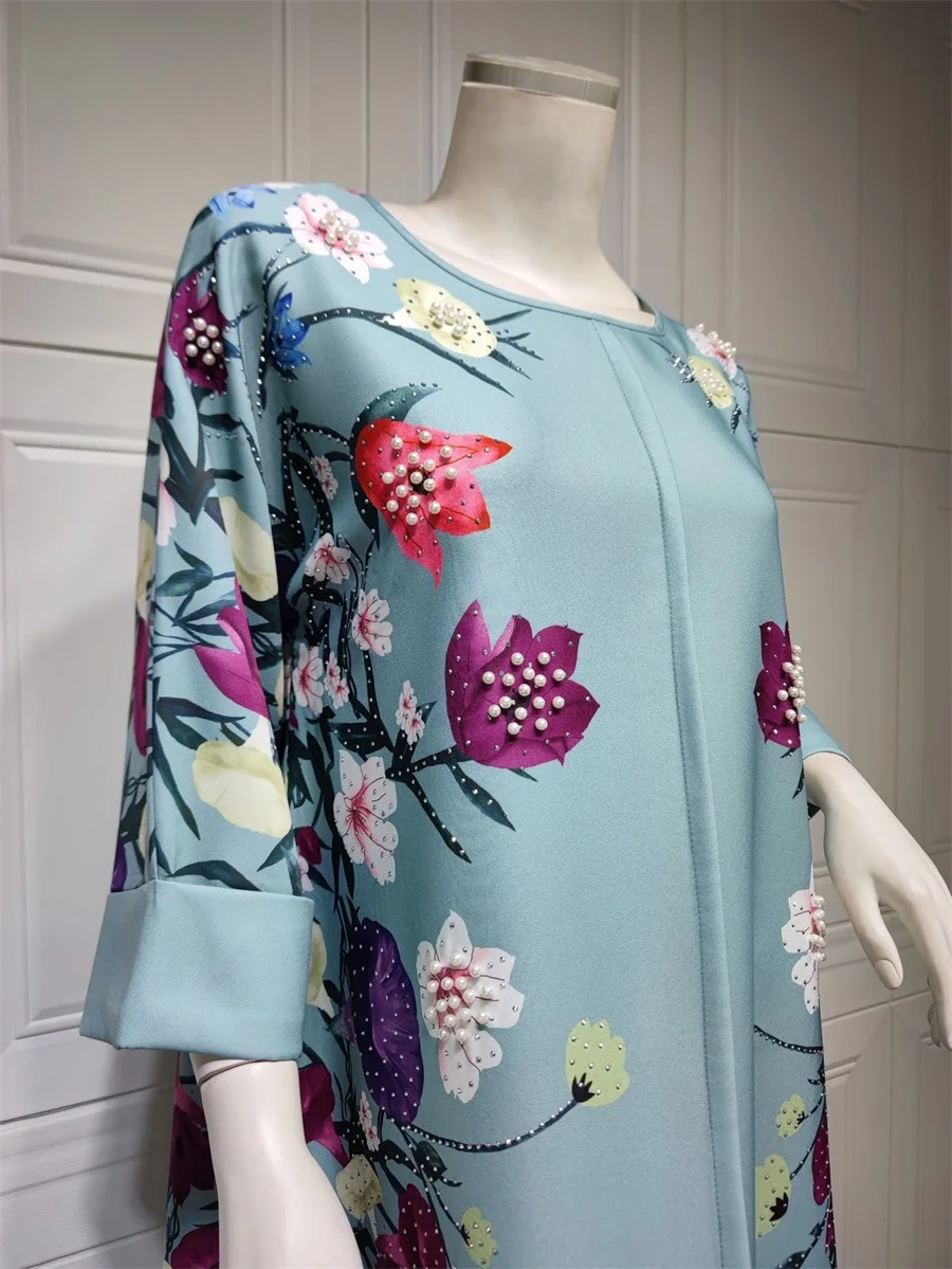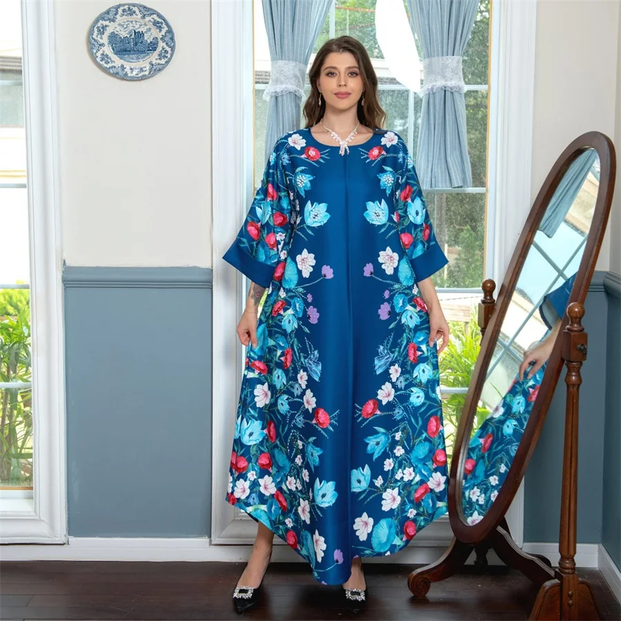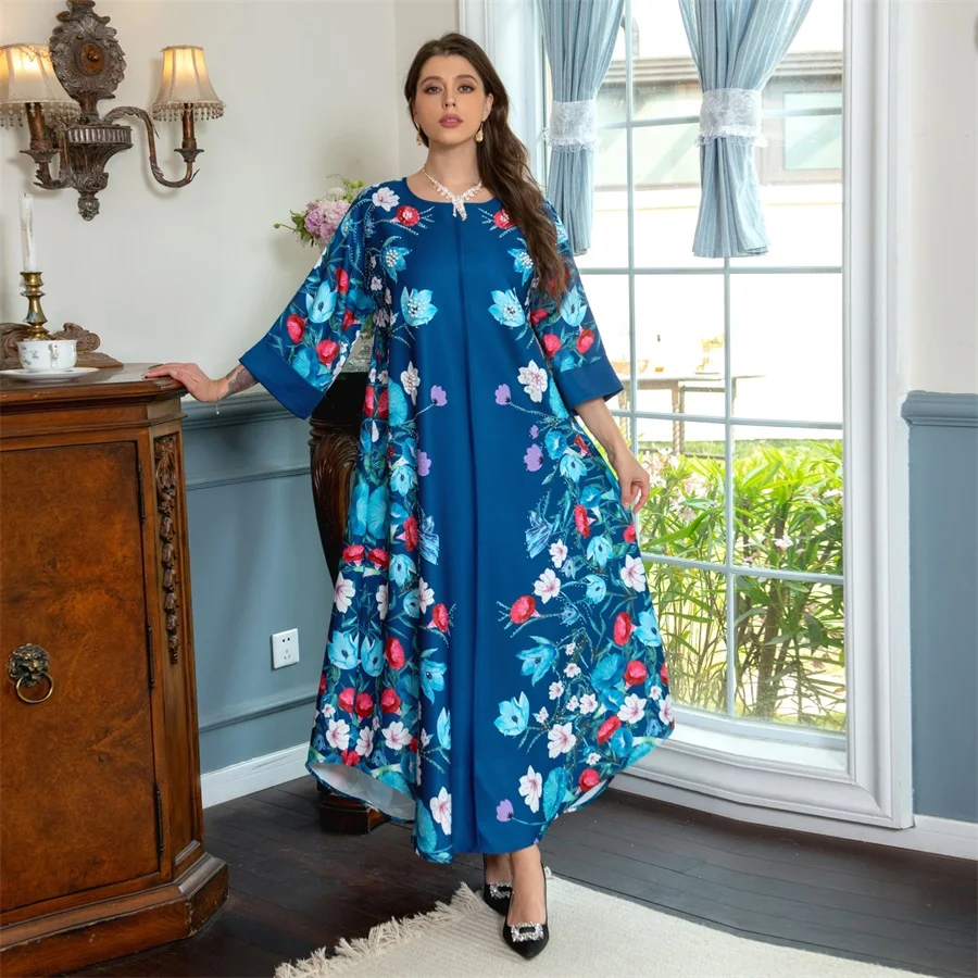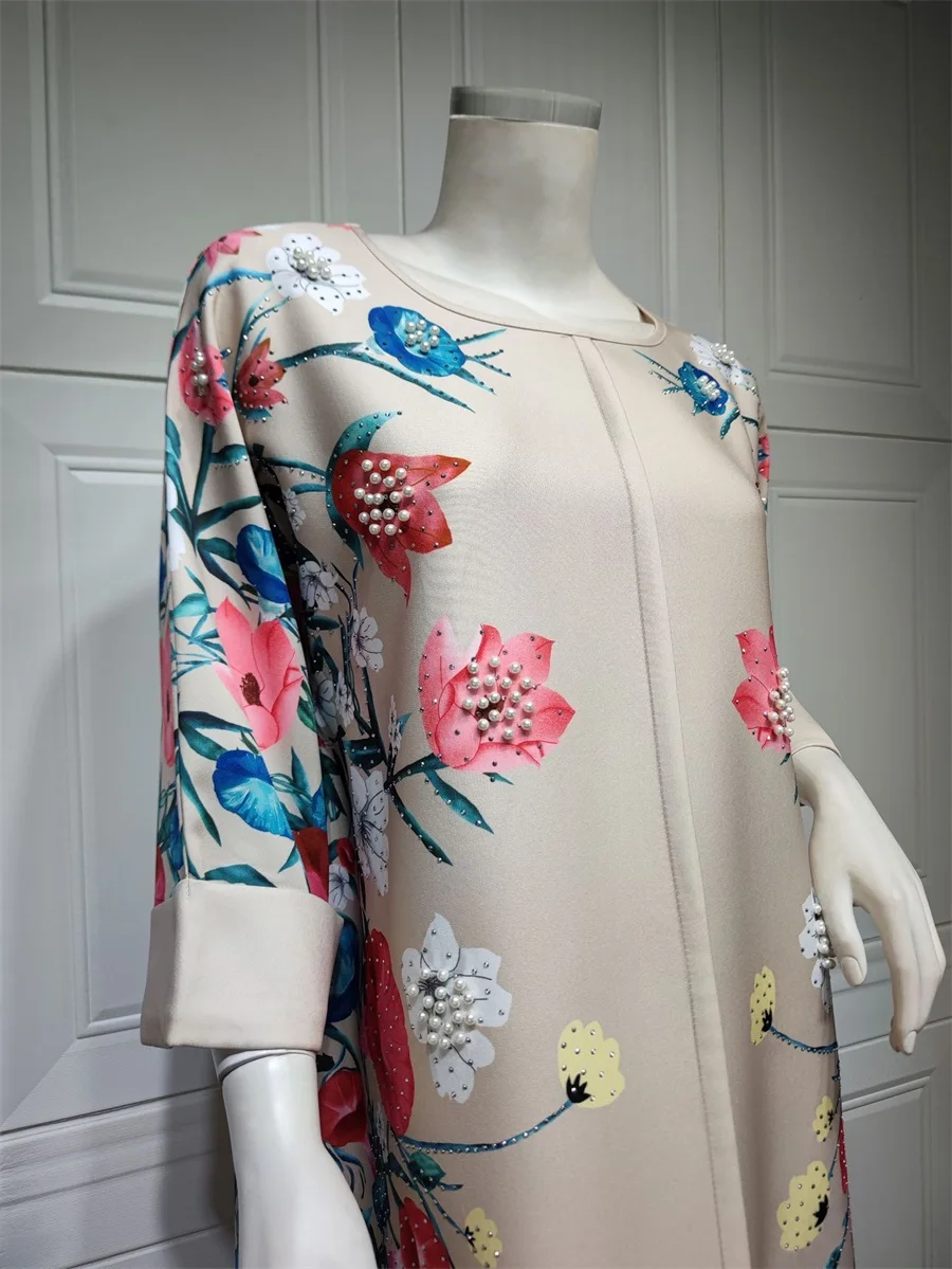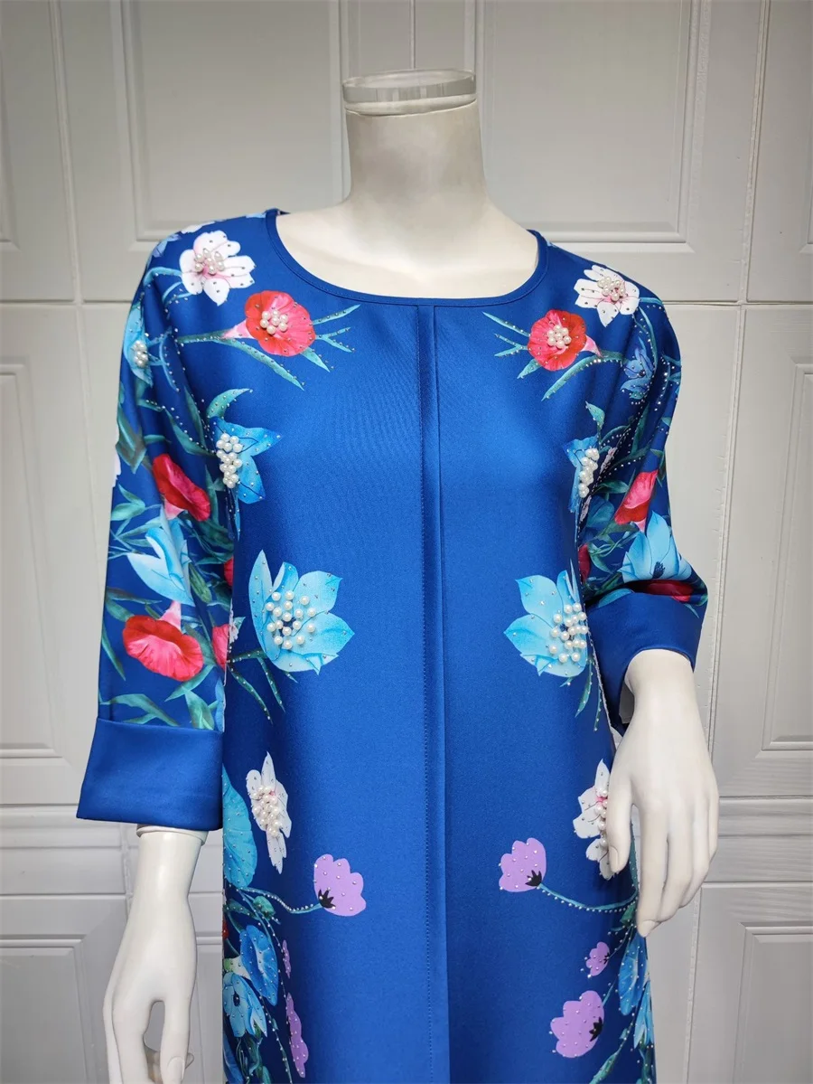 فساتين نسائية كويتية جلابية دبي فاخرة ومطرزة بالخرز مطبوعة بالورود لحفلات الراقصة المرأة المسلمة عباية قفطان مغربي