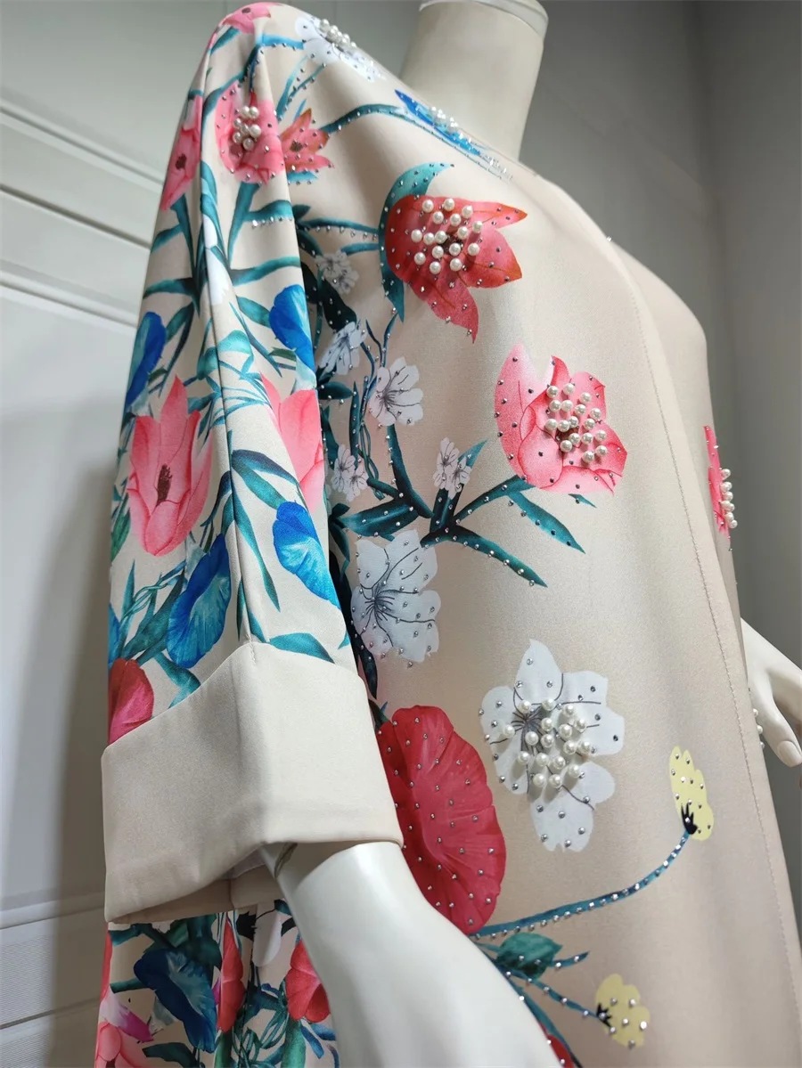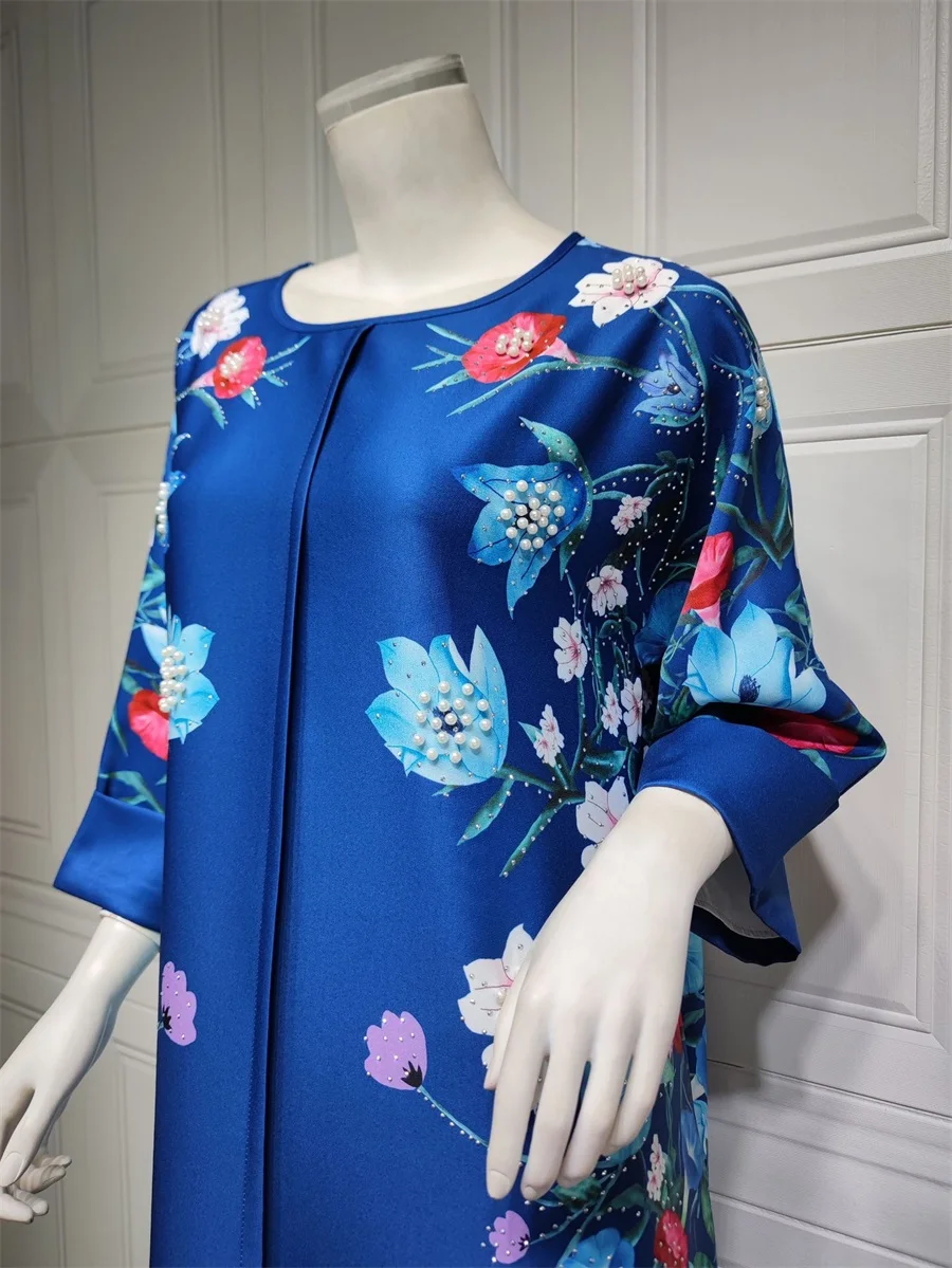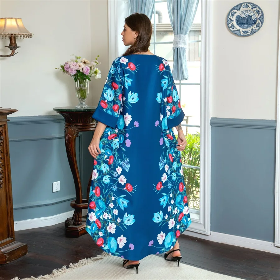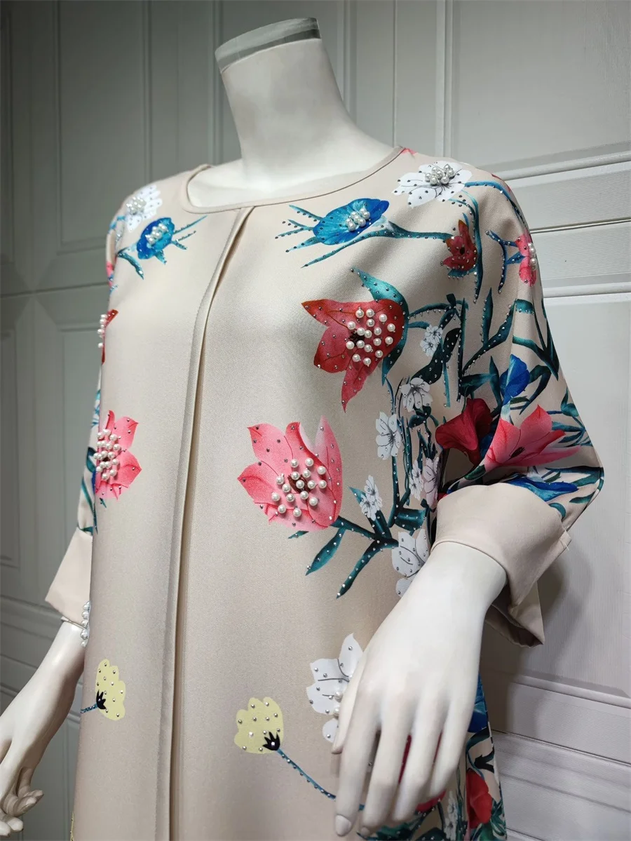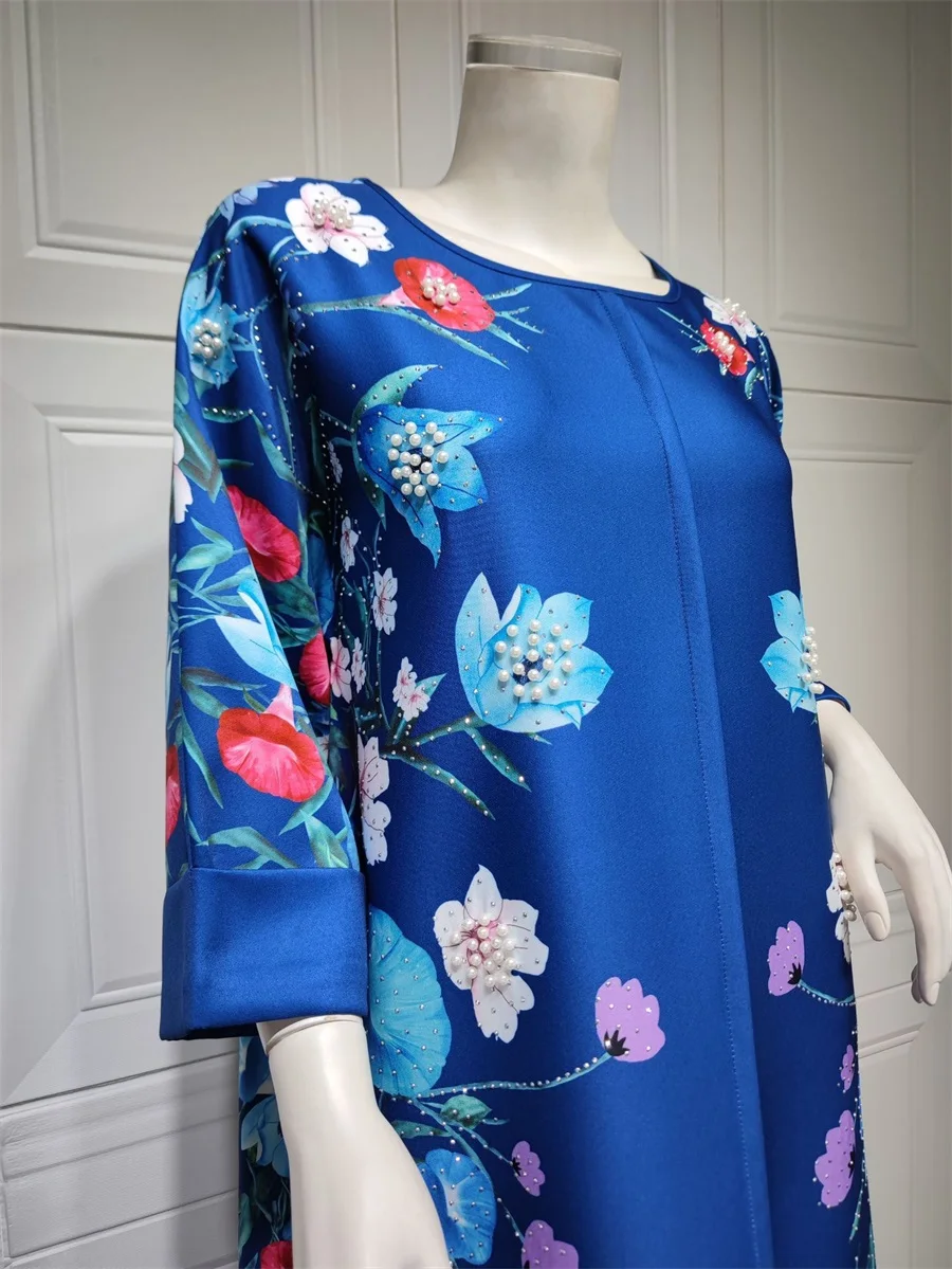فساتين نسائية كويتية جلابية دبي فاخرة ومطرزة بالخرز مطبوعة بالورود لحفلات الراقصة المرأة المسلمة عباية قفطان مغربي