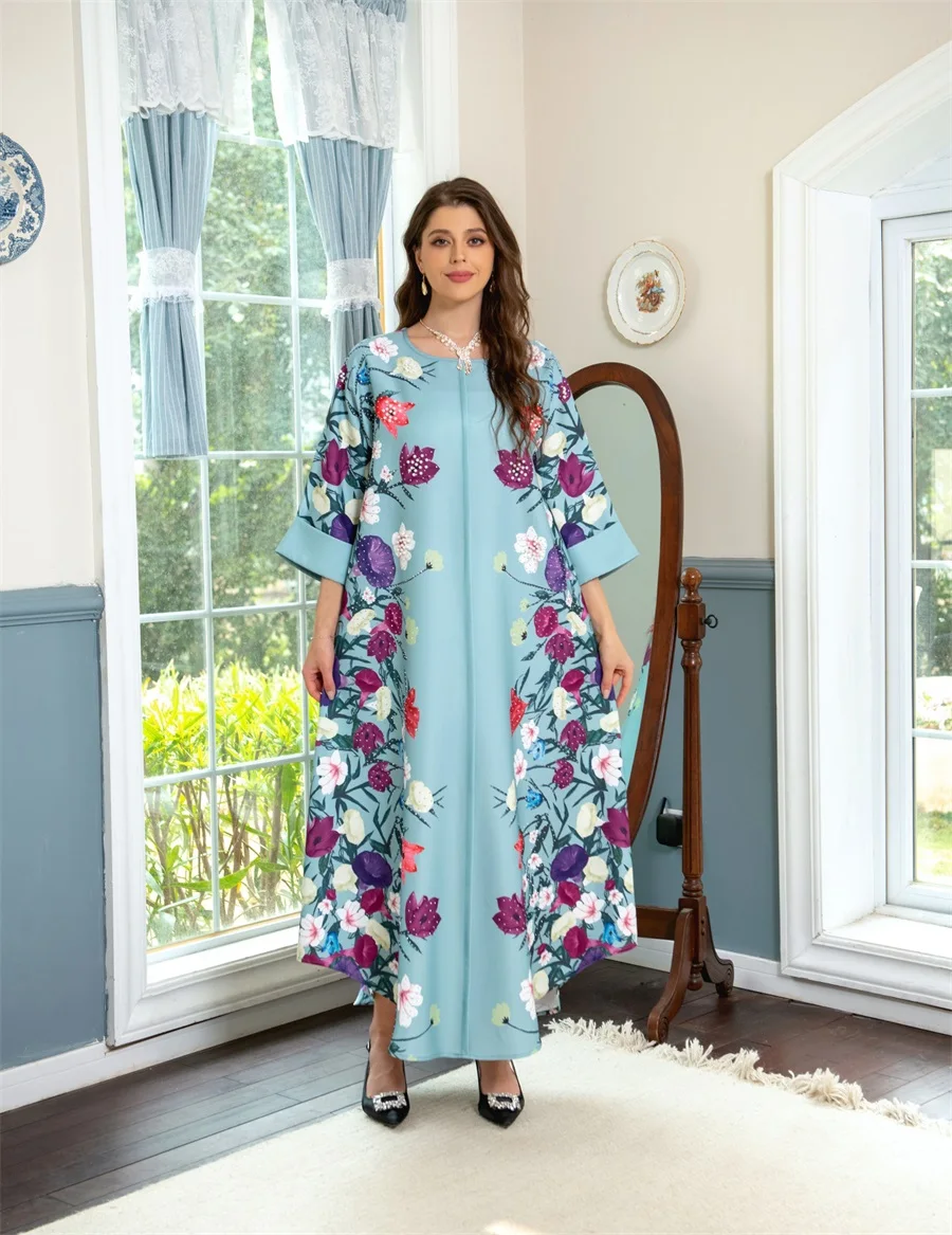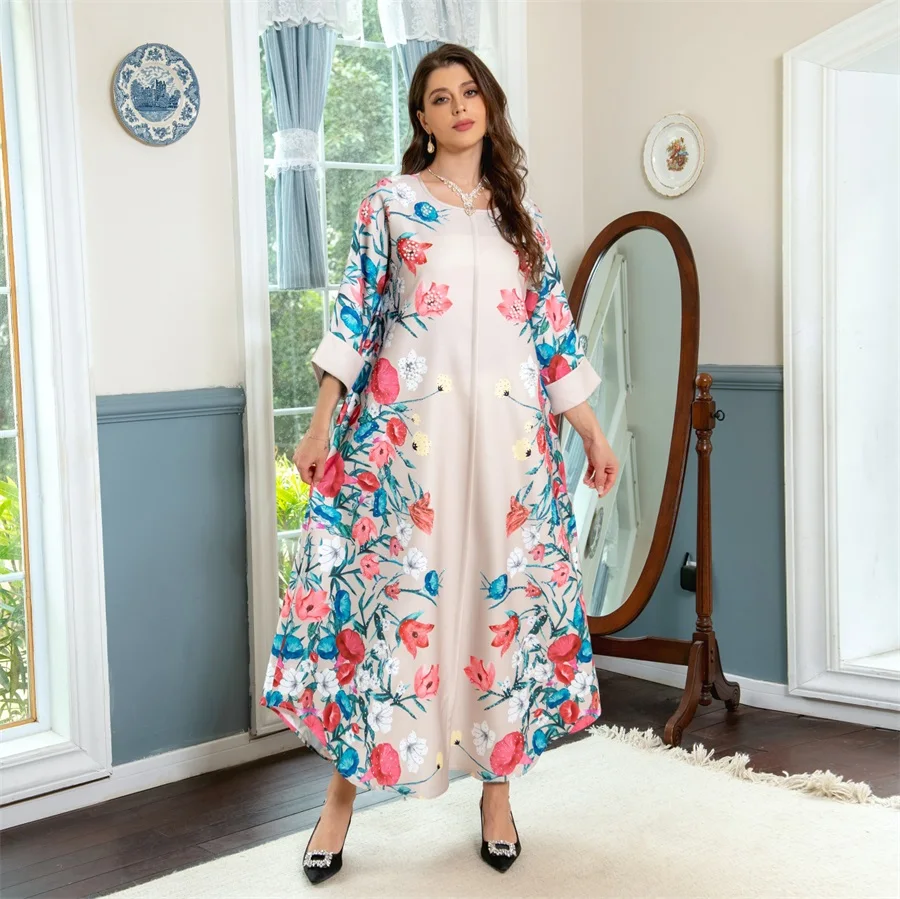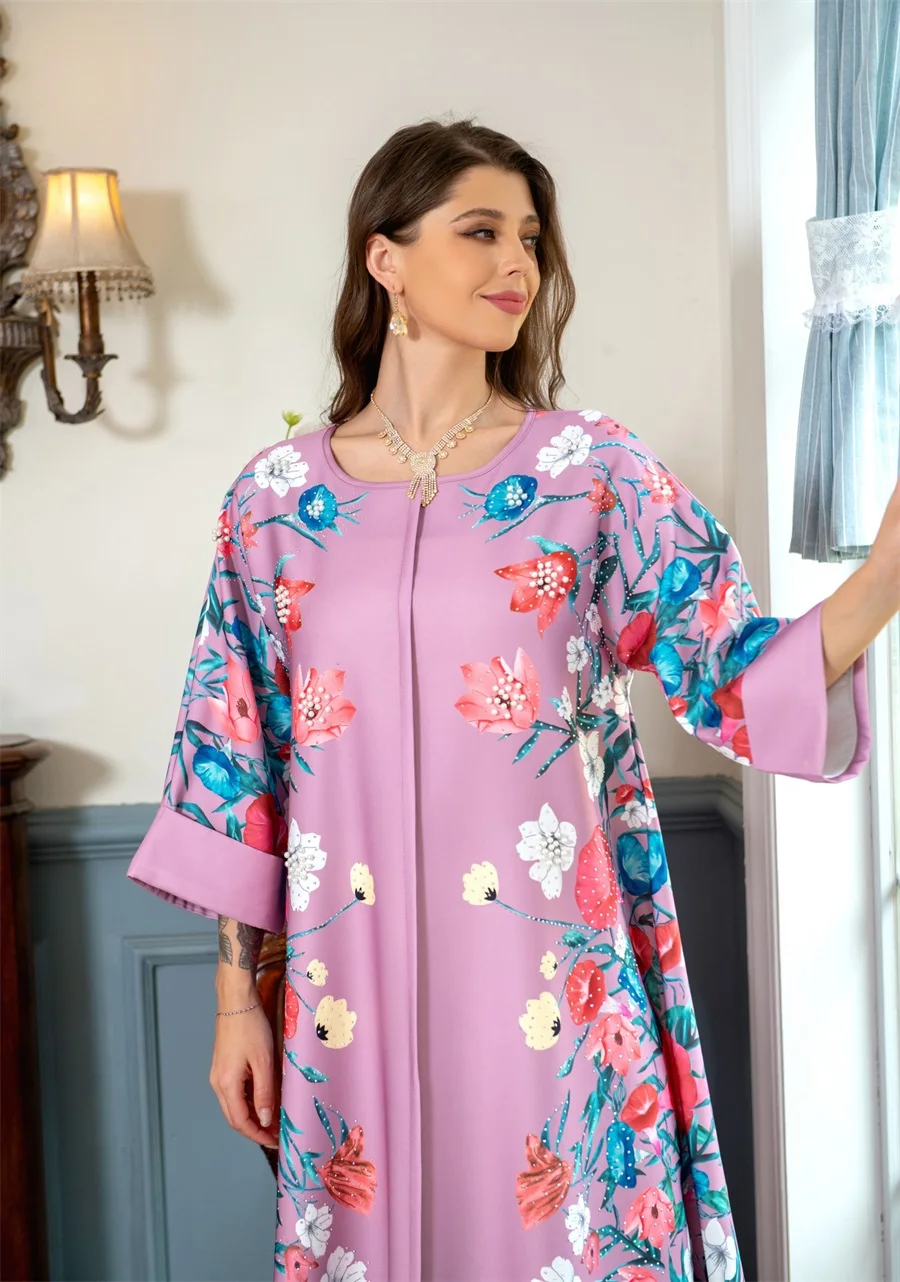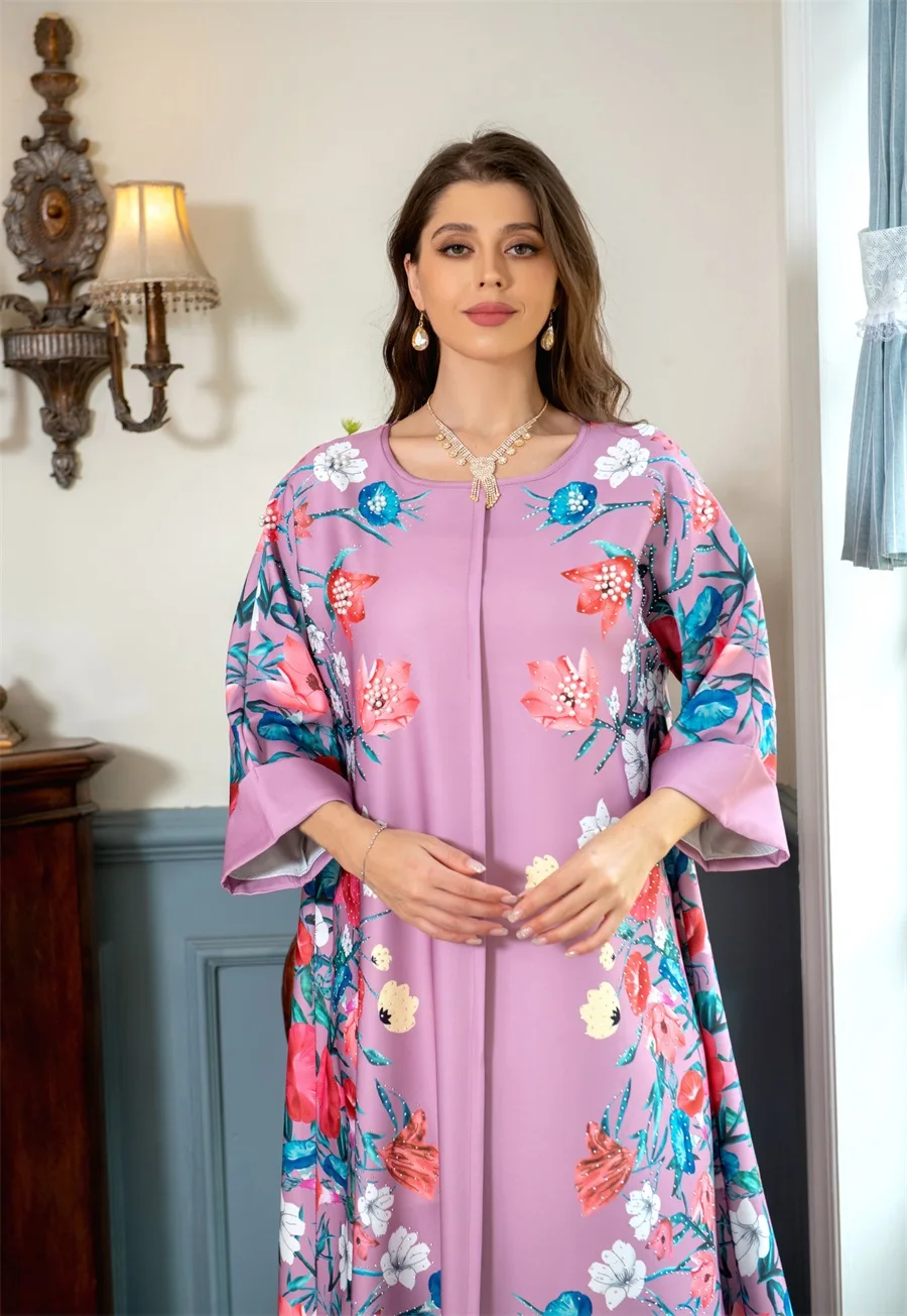 - فساتين نسائية كويتية جلابية دبي فاخرة ومطرزة بالخرز مطبوعة بالورود لحفلات الراقصة المرأة المسلمة عباية قفطان مغربي
