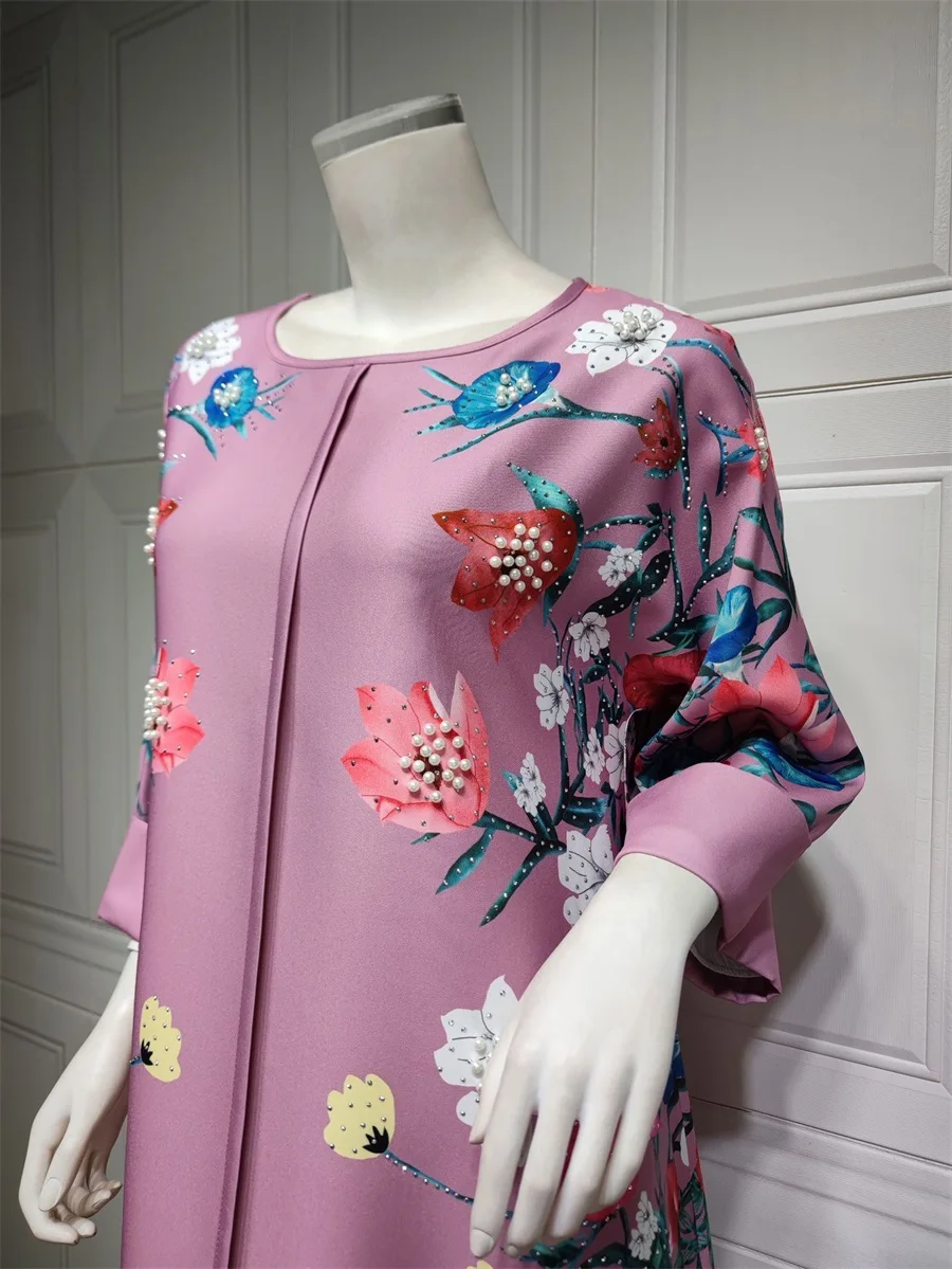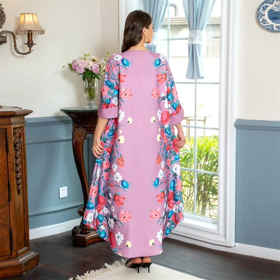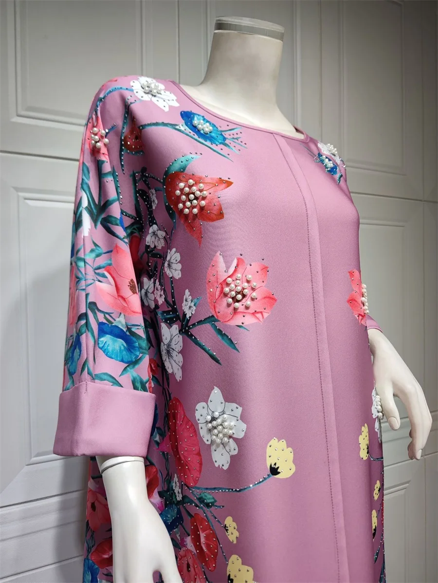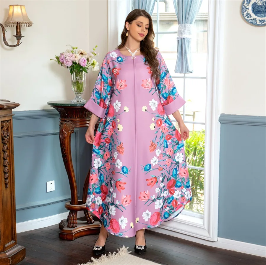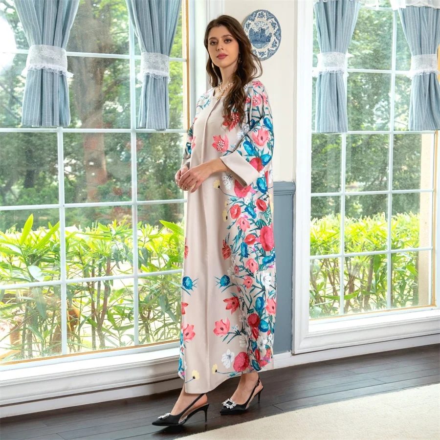 - فساتين نسائية كويتية جلابية دبي فاخرة ومطرزة بالخرز مطبوعة بالورود لحفلات الراقصة المرأة المسلمة عباية قفطان مغربي