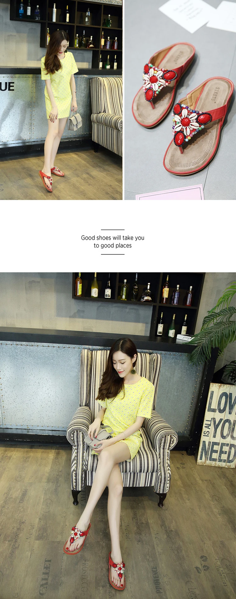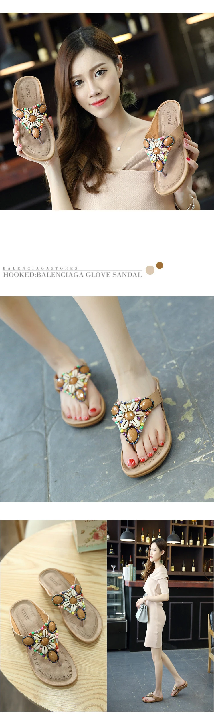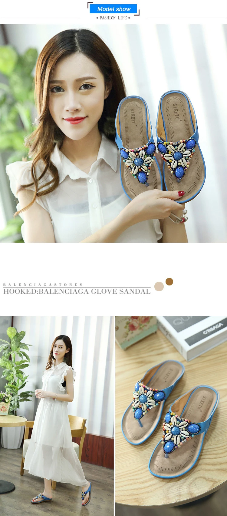 SIKETU ماركة الصيف الشاطئ النساء بوهو مشدود Jewled خمر الشرائح الوطنية كعب مسطح الحلو الوجه يتخبط Extoic البتلة زهرة لينة 42