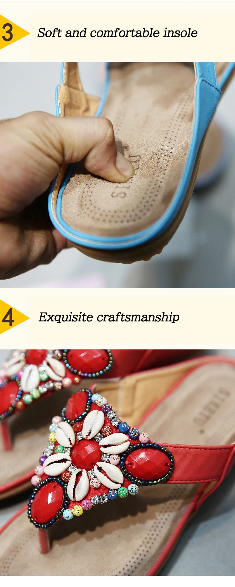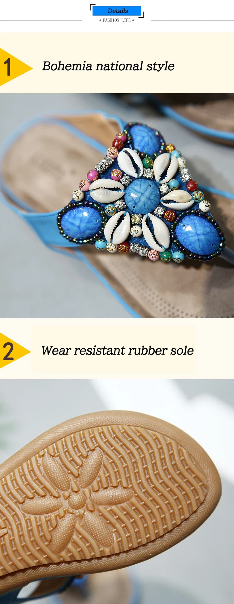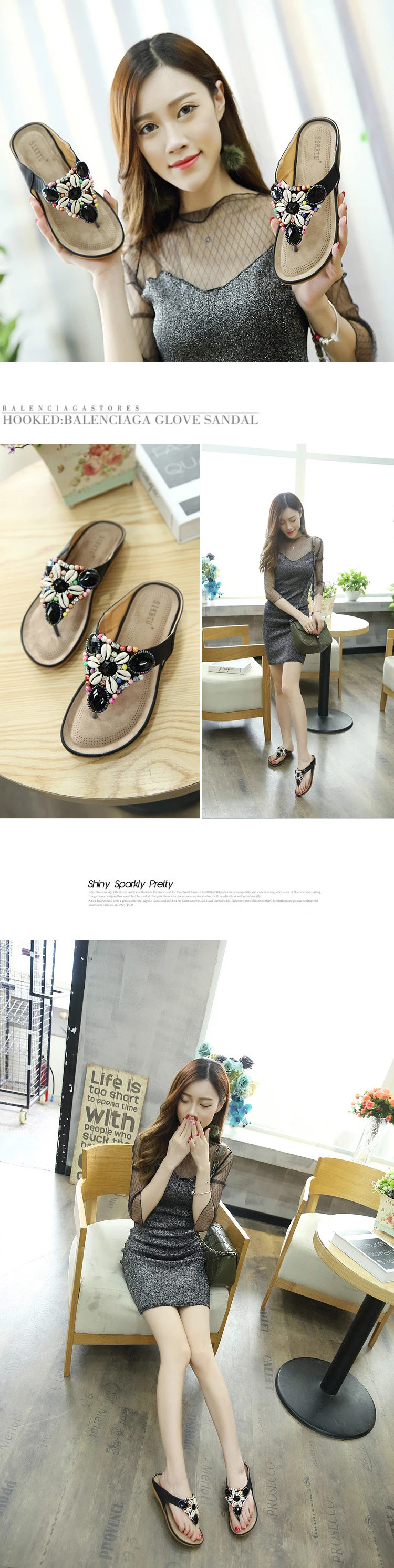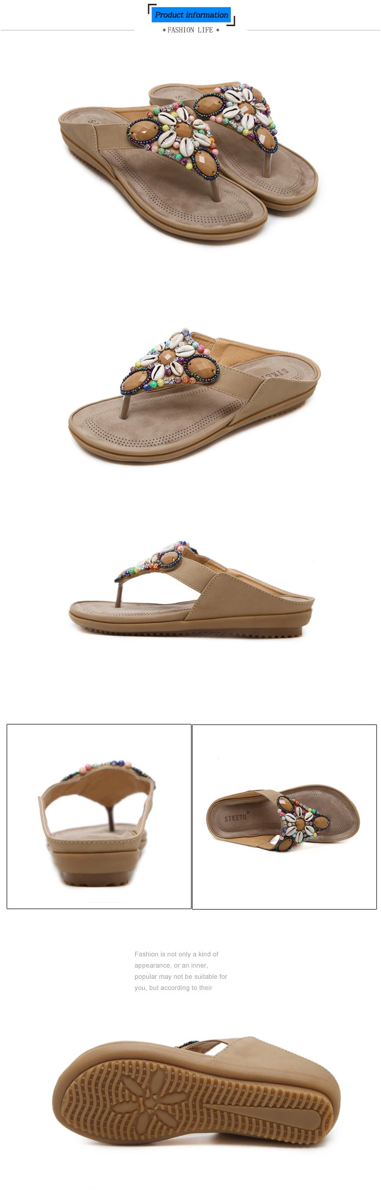 SIKETU ماركة الصيف الشاطئ النساء بوهو مشدود Jewled خمر الشرائح الوطنية كعب مسطح الحلو الوجه يتخبط Extoic البتلة زهرة لينة 42