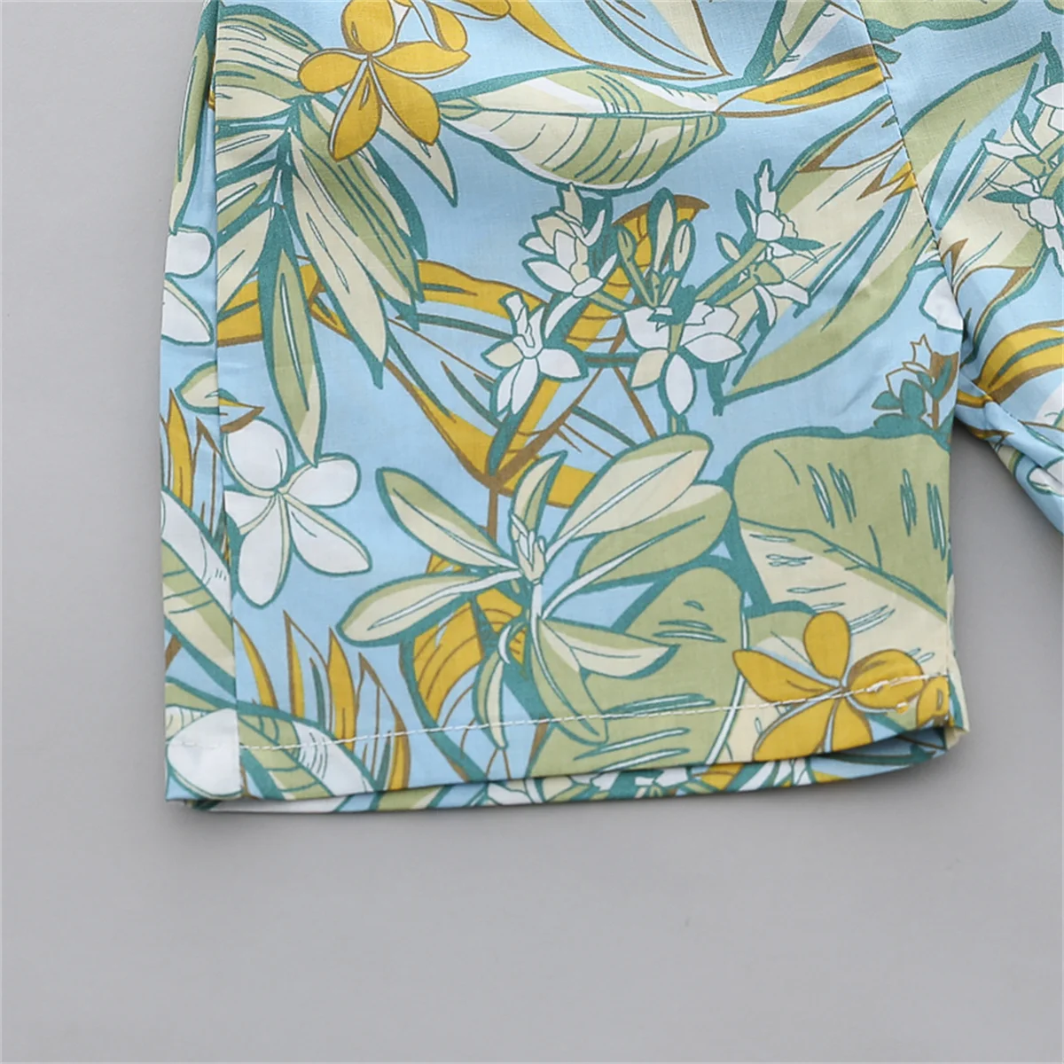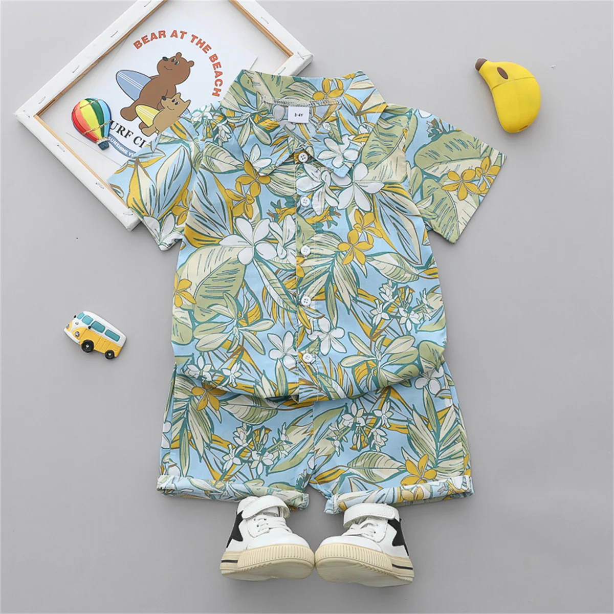 - طقم قميص وشورت بأكمام قصيرة للأولاد ، شورت أنيق ، نمط أوراق الشجر والزهور ، 2 *