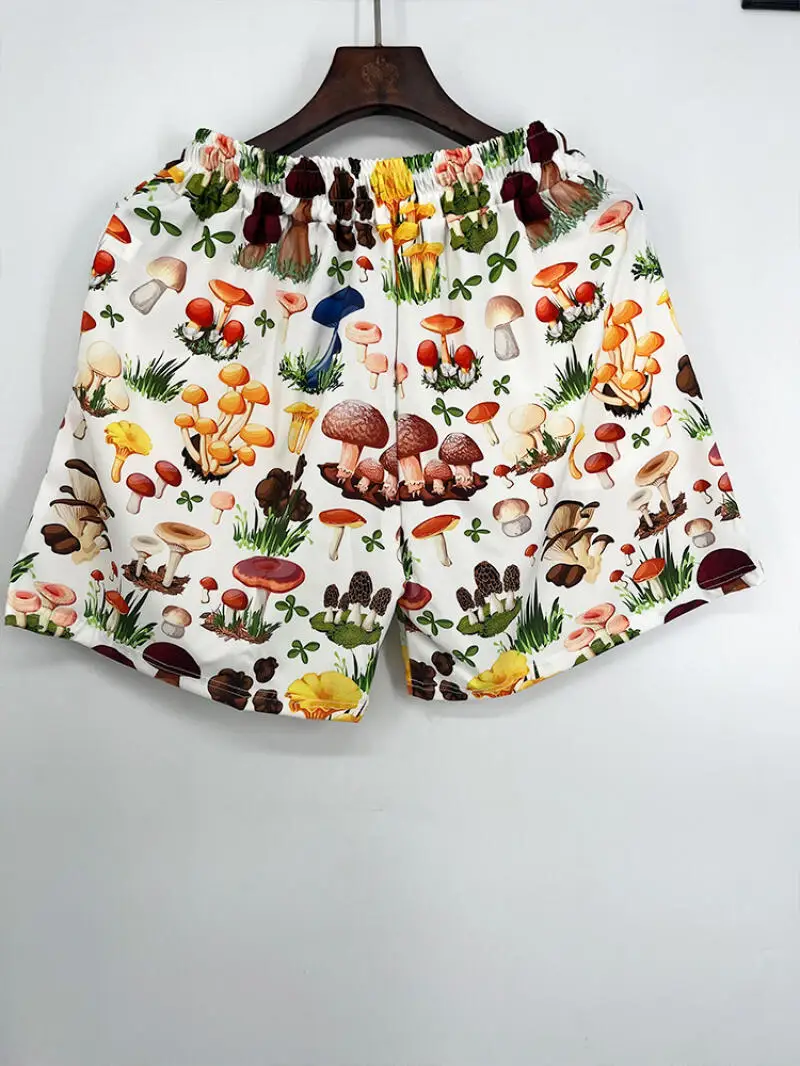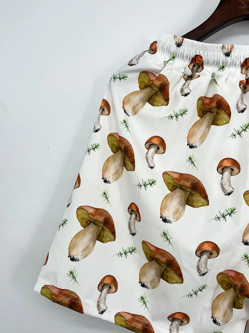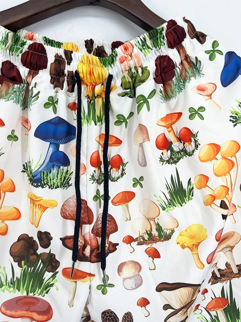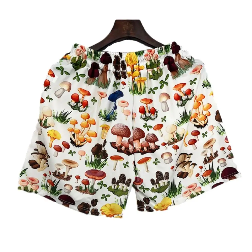 - سراويل شاطئ صيفية للرجال ، نباتات مطبوعة ثلاثية الأبعاد ، نمط الفطر ، بنطال مستقيم الساق ، مايوه غير رسمي ، ملابس سباحة رياضية كلاسيكية