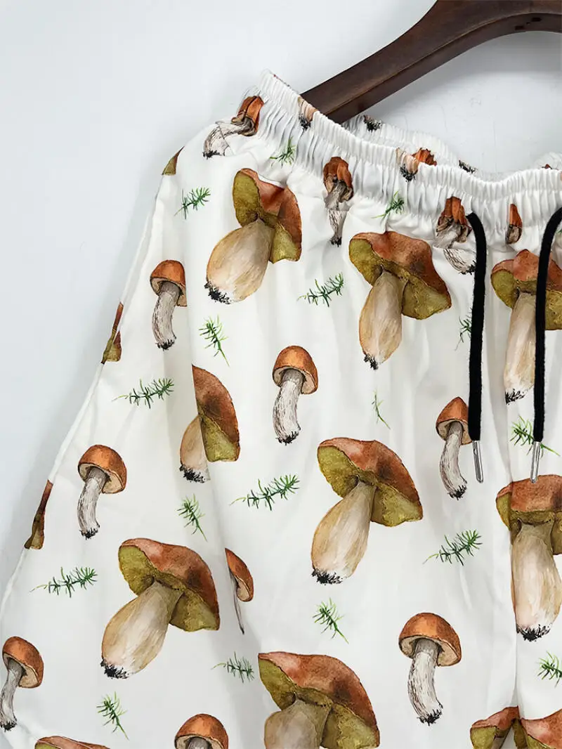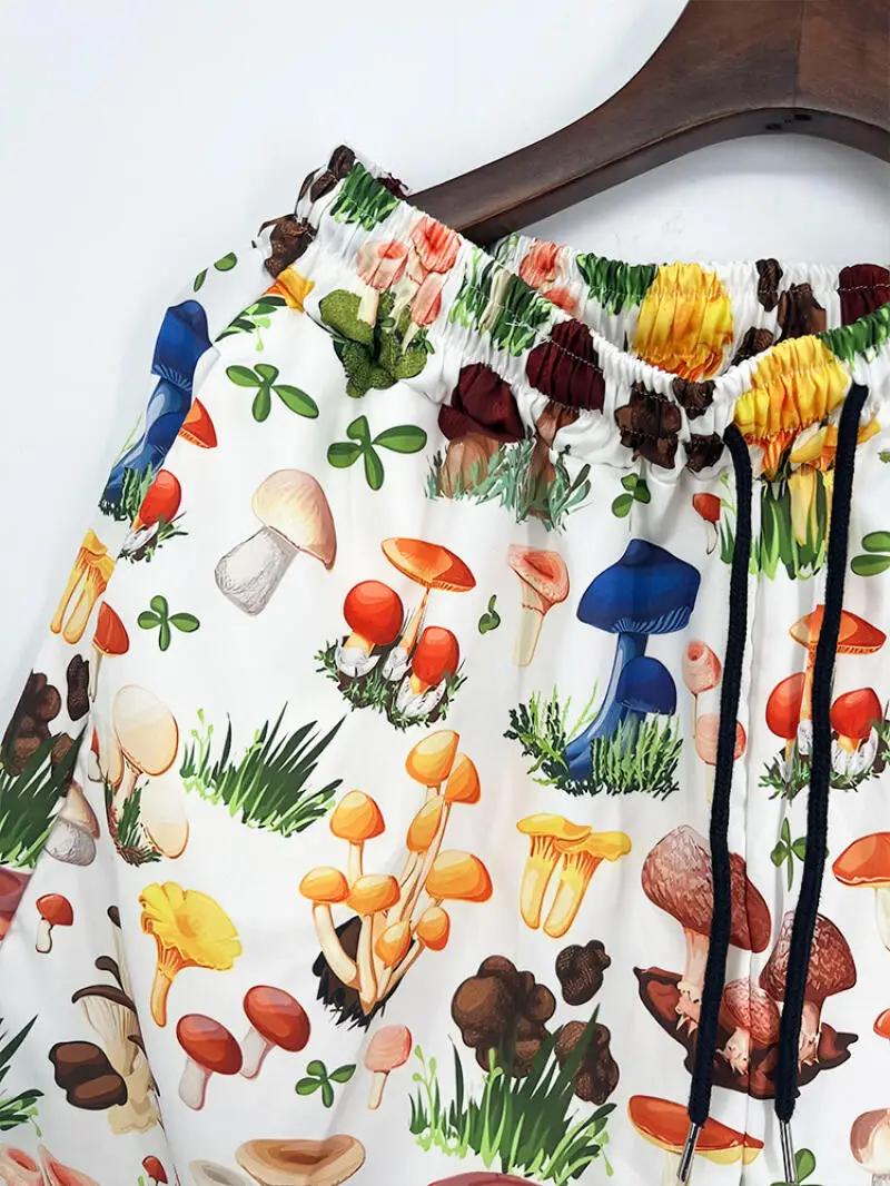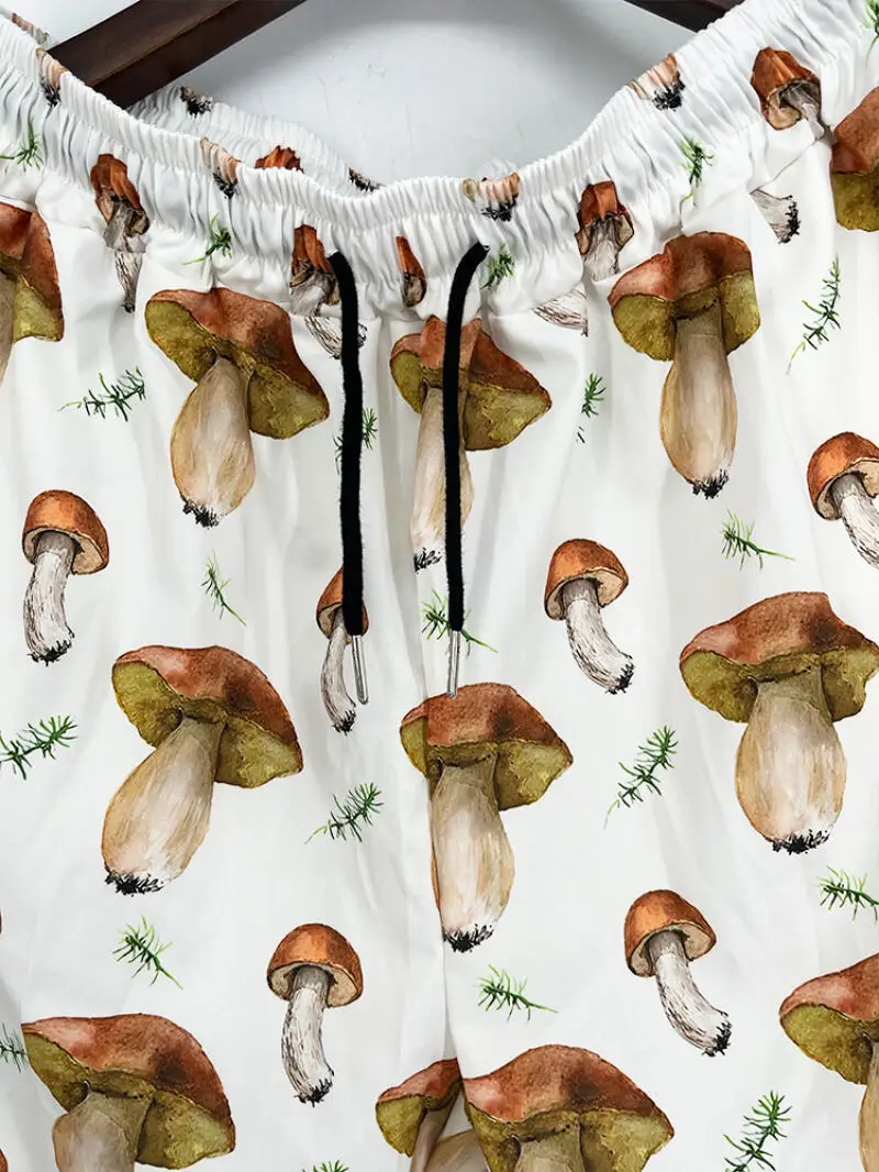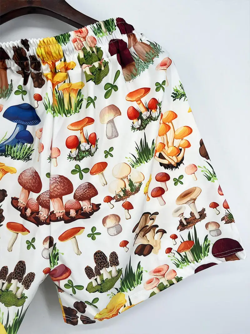 - سراويل شاطئ صيفية للرجال ، نباتات مطبوعة ثلاثية الأبعاد ، نمط الفطر ، بنطال مستقيم الساق ، مايوه غير رسمي ، ملابس سباحة رياضية كلاسيكية