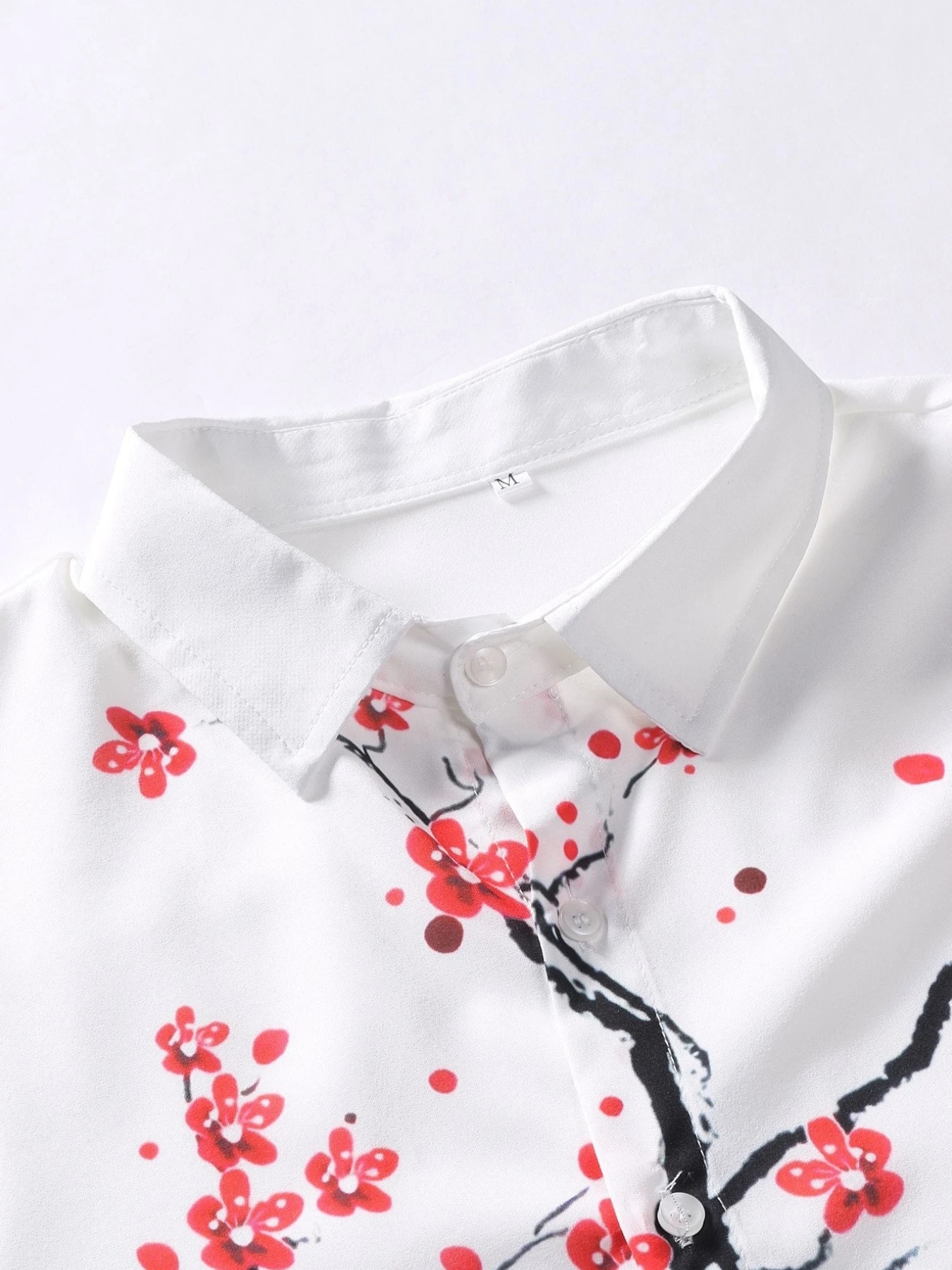- قميص رجالي غير رسمي مرسومة بالحبر ، طباعة زهر البرقوق ، قميص شاطئ بأكمام قصيرة