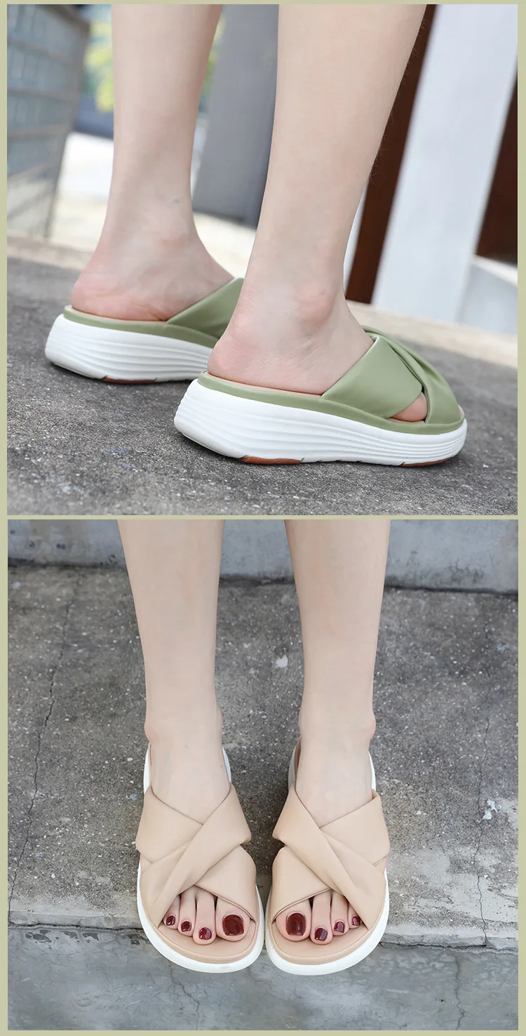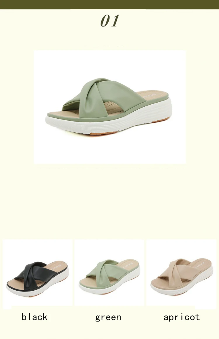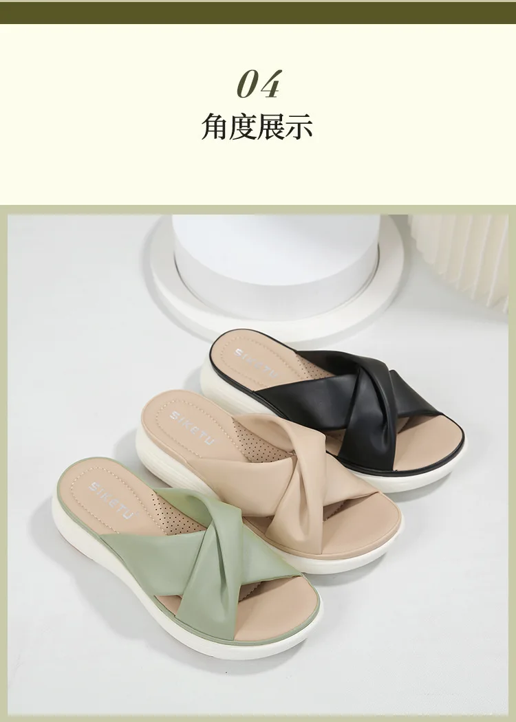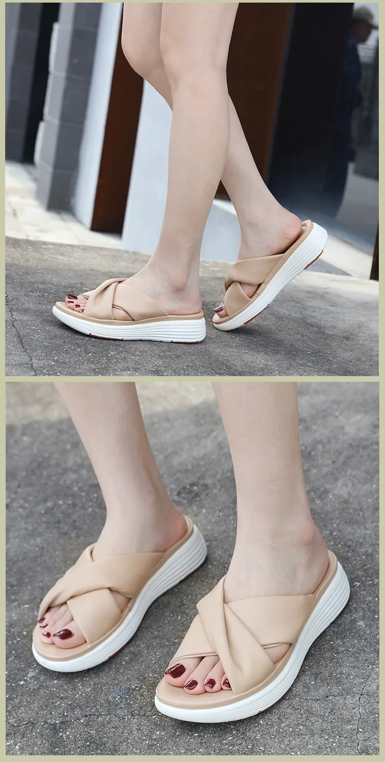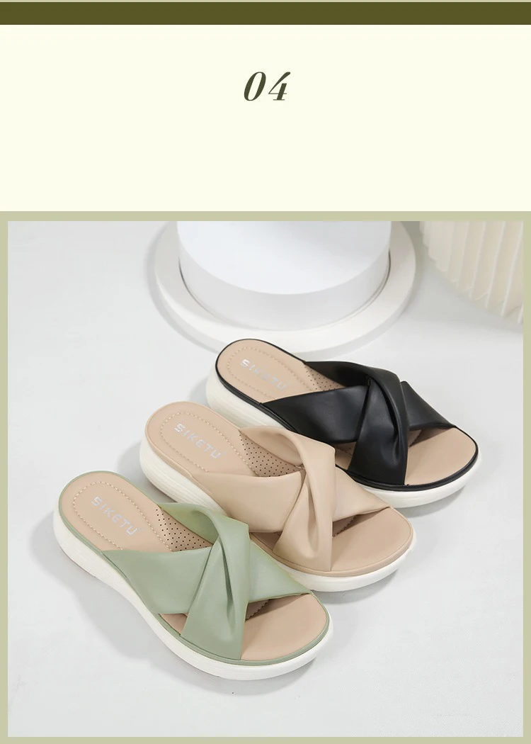 - SIKETU ماركة عادية إسفين مطوي الصليب أشرطة سميكة الشرائح النساء بلون فستان كلاسيكي الانزلاق على النعال المشي ضوء الصيف