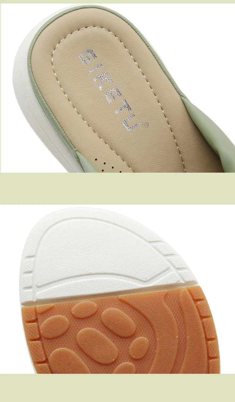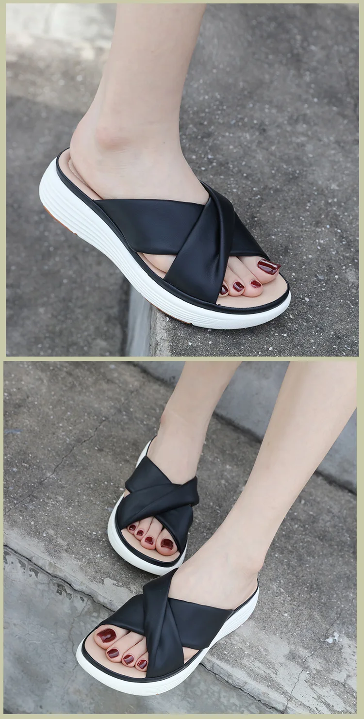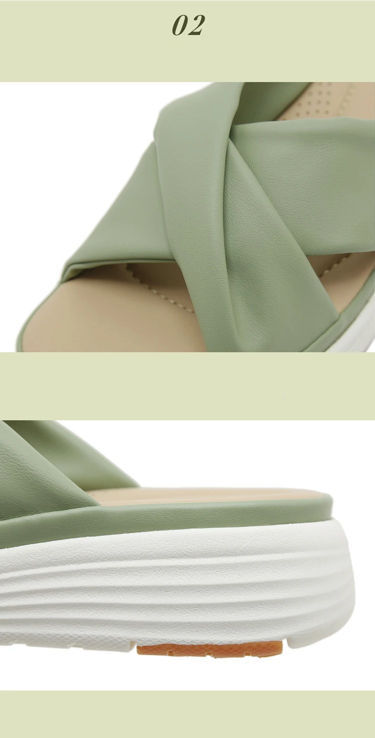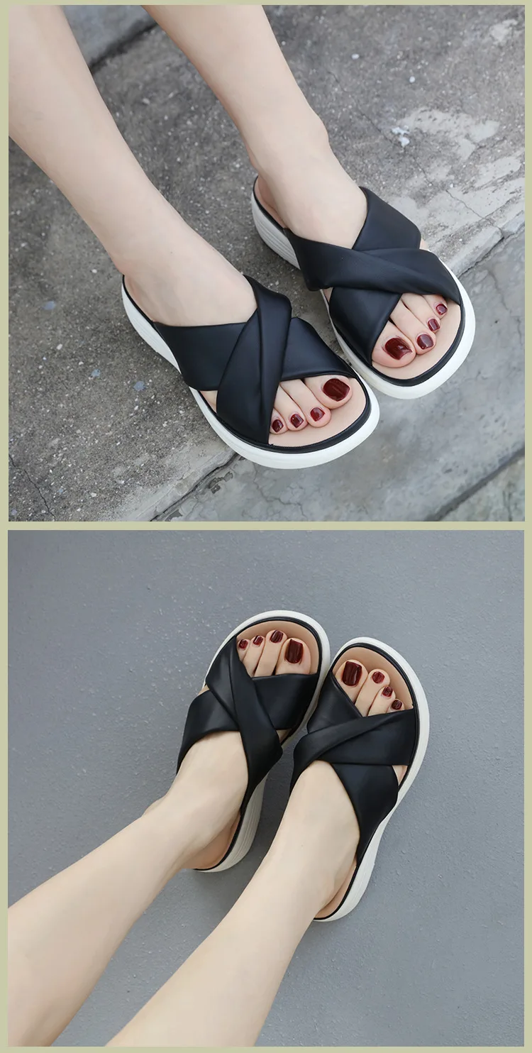- SIKETU ماركة عادية إسفين مطوي الصليب أشرطة سميكة الشرائح النساء بلون فستان كلاسيكي الانزلاق على النعال المشي ضوء الصيف