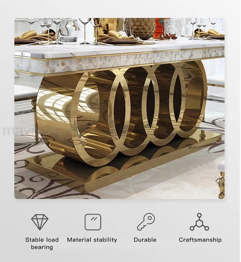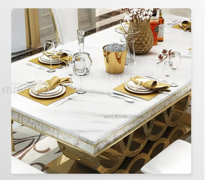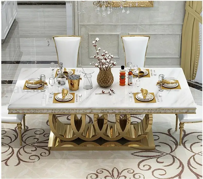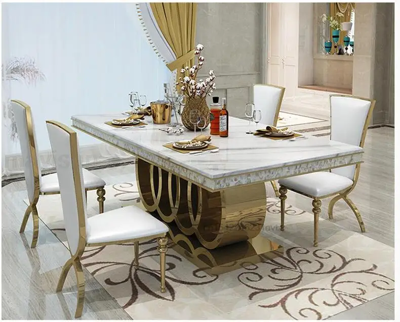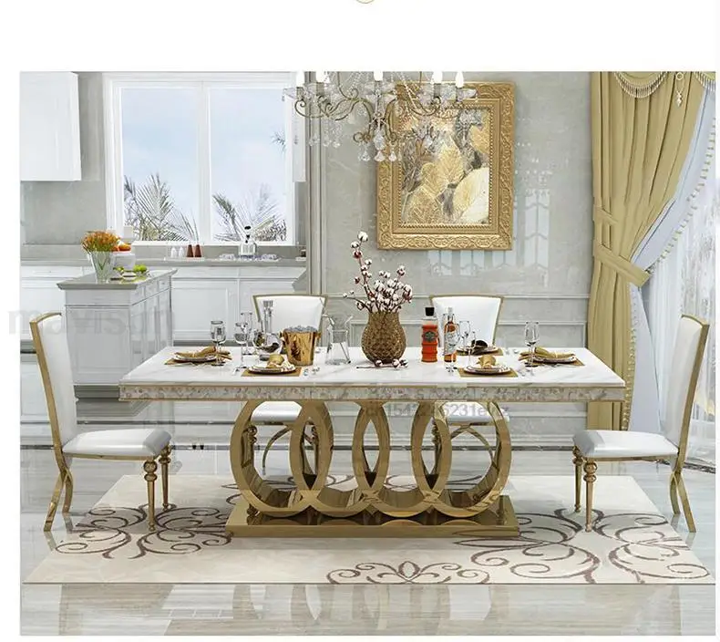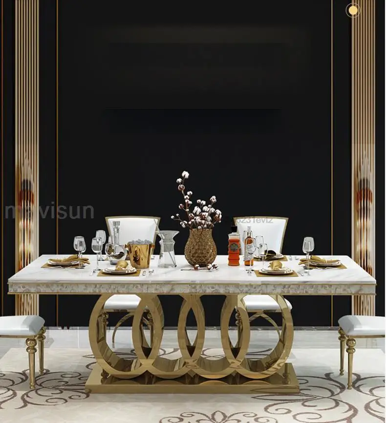 - الرخام طاولة الطعام وكرسي مزيج ، الذهبي منحوتة طاولة المطبخ ، قاعدة الفولاذ المقاوم للصدأ ، أعلى درجة ، شقة كبيرة ، ما بعد الحداثة