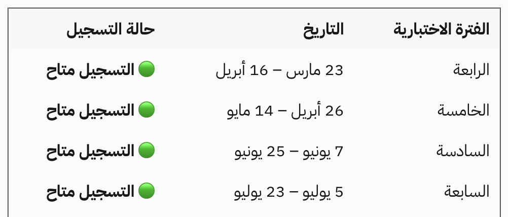 اختيار التواريخ يجب ان تكون ضمن الفترات التالية التي وضعتها الهيئة :