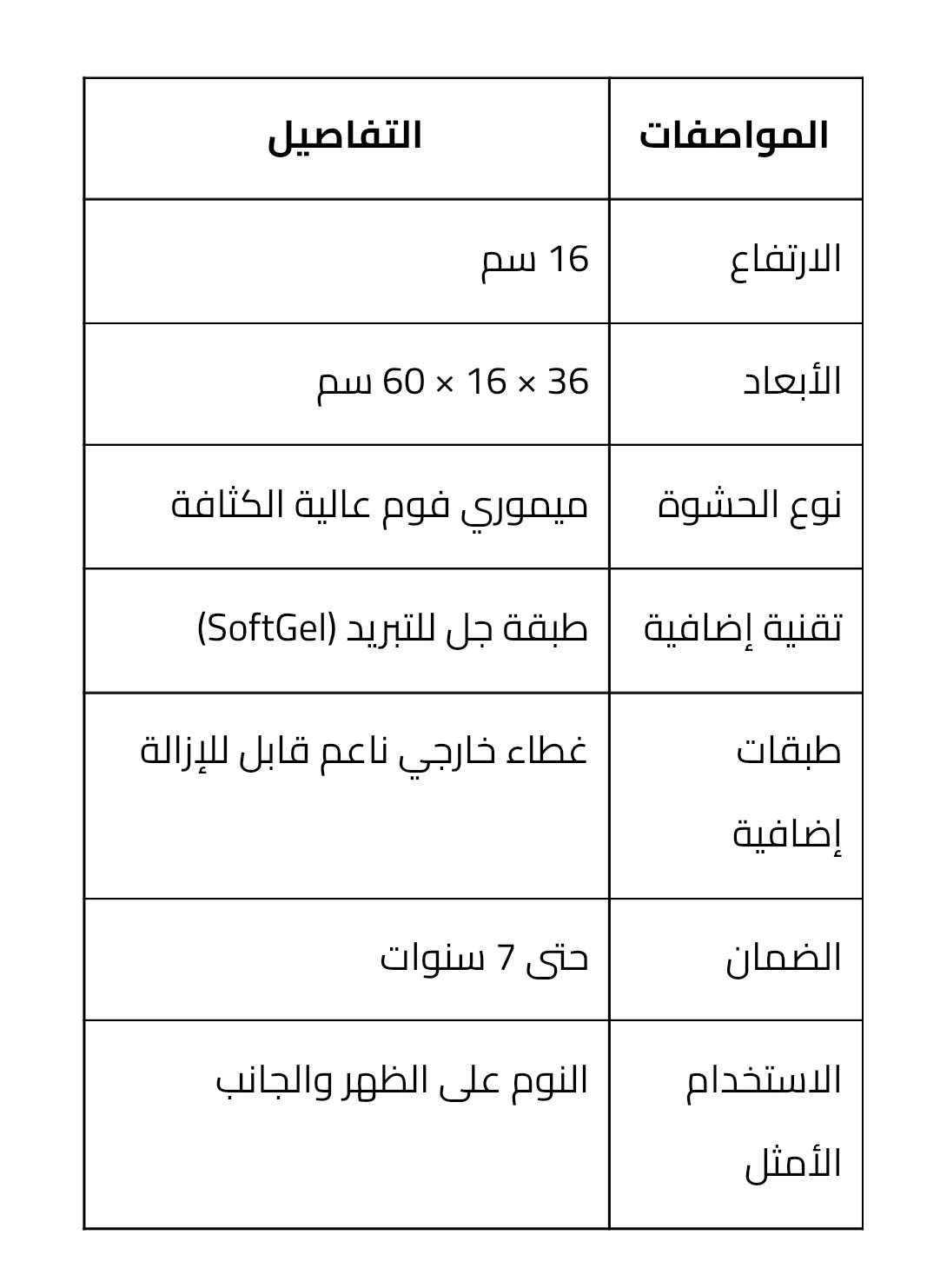- طبقة جل للتبريد تحافظ على درجة حرارة مثالية.