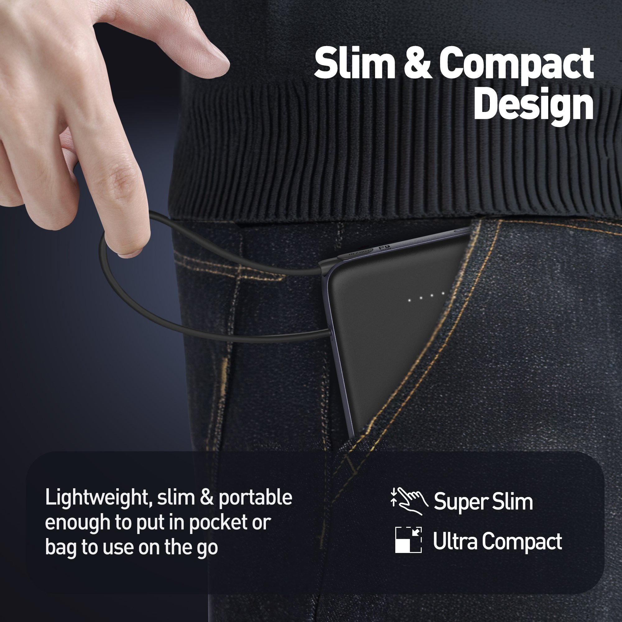 تصميم نحيف ومدمج: خفيف الوزن ونحيف وقابل للحمل بما يكفي لوضعه في الجيب أو الحقيبة لاستخدامه أثناء التنقل.