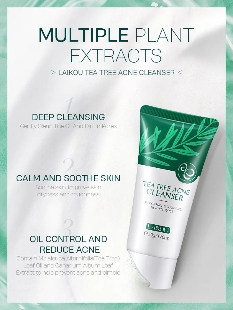 - منظف لشجرة الشاي من lackou منظف لطيف لعلاج حب الشباب والرؤوس السوداء منظف لشد المسام منظف عميق لتنظيف البشرة وترطيب الوجه والعناية بالبشرة