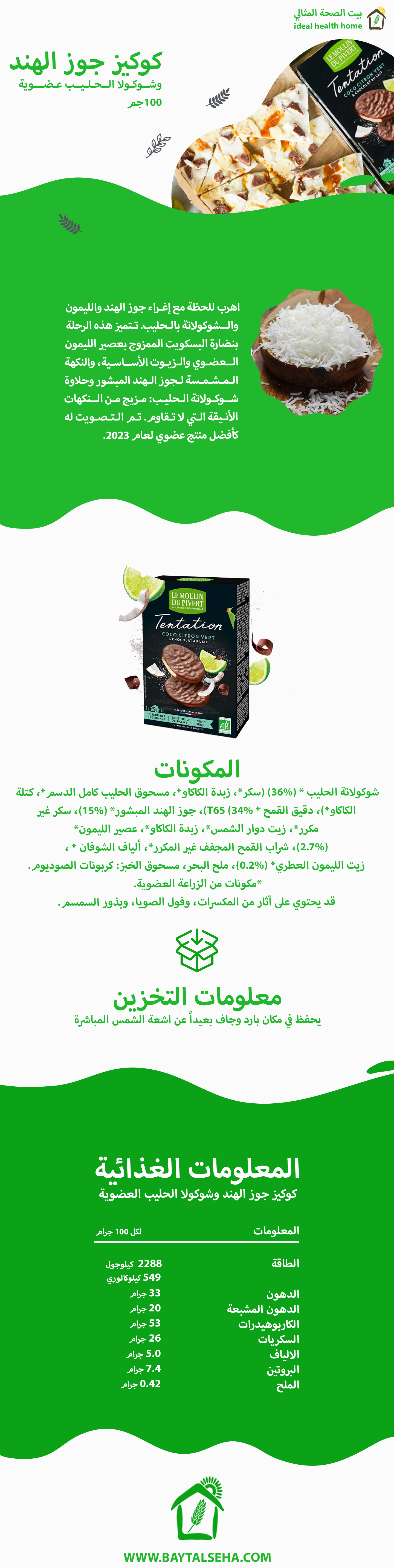 بسكويت بالشوكلاته و جوز الهند عضوي 110جم