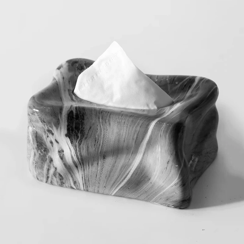 صندوق مناديل سيراميك منقوش بتصميم الرخام، مصنوع يدويًا مع إمكانية إزالة صندوق الورق الداخلي. عملي وأنيق لتزيين المنزل وإبراز ديكور أنيق على الطاولة أو المكتب. صندوق مناديل سيراميك منقوش بالرخام مصنوع يدويًا مناديل نقل المياه صندوق ورقي صندوق مناديل إبداعي