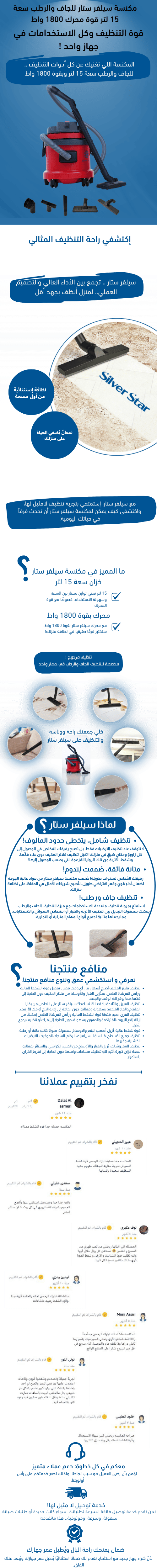 - مكنسة سيلفر ستار للجاف والرطب 15 لتر بقوة 1800 واط