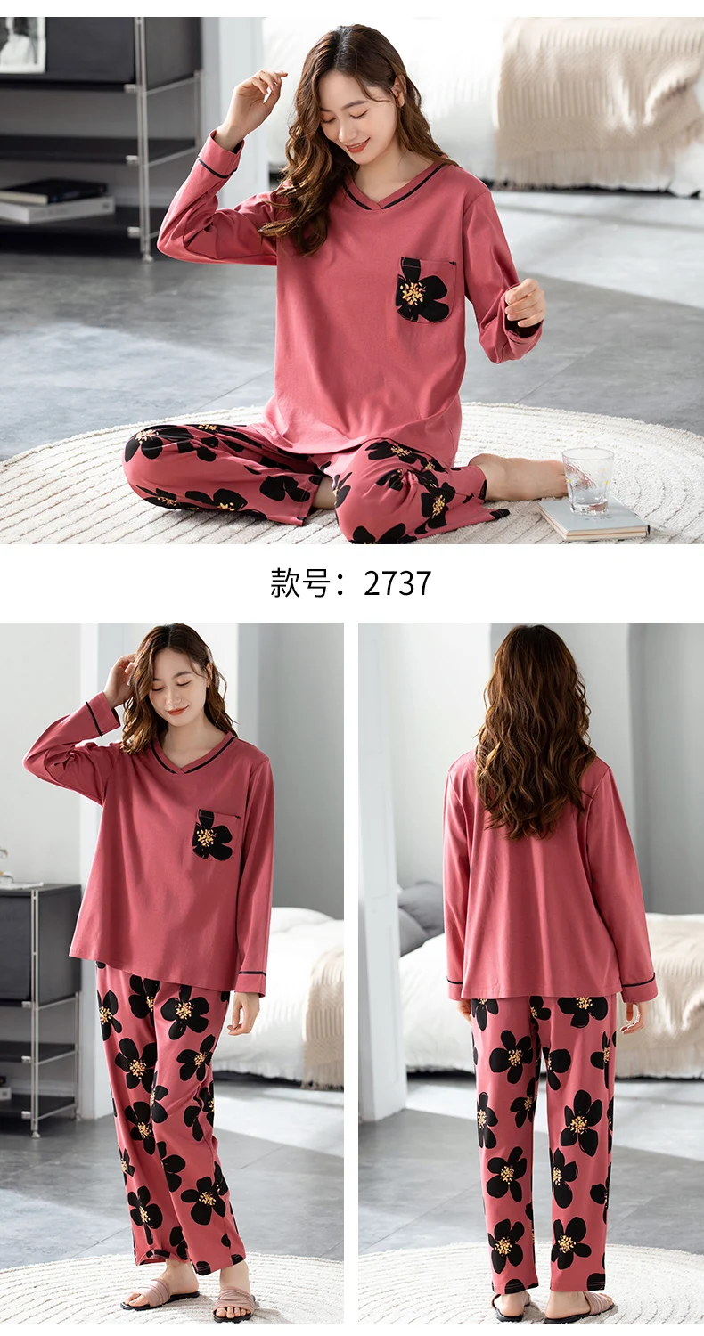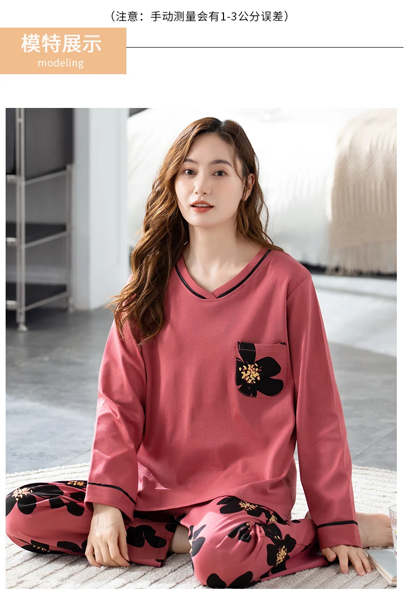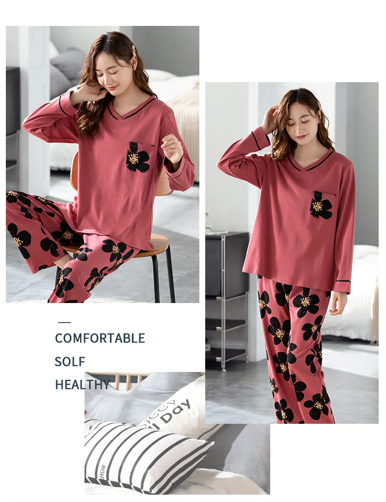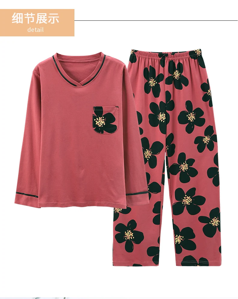 طقم بيجامة من القطن الخالص للنساء نمط الزهور