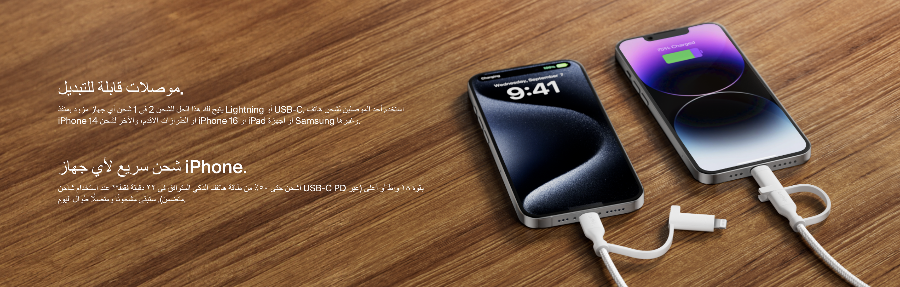 بيلكن - سلك قماشي بطول 1.5 متر اثنين في واحد لايتنينق وتايب سي - اسود