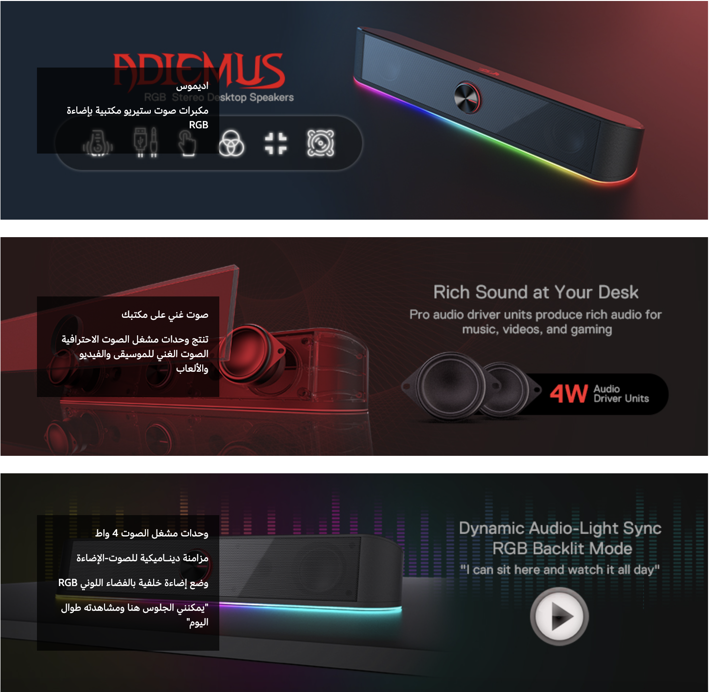 ريدراغون - اديموس ار جي بي سطح المكتب مكبر صوت