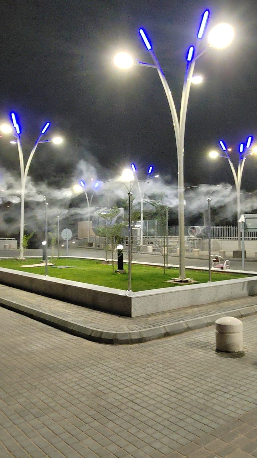 باكدج الإحاطة الشاملة من ALFA PURITY يوفر نظام تبريد متكامل مكوّن من مضخة ضباب عالية الضغط + 6 أعمدة ستانلس بقدرة توزيع وتغطية ممتازة للمساحات الخارجية.