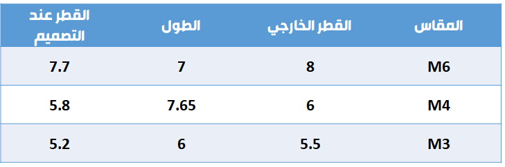 وجدنا أن "القطر عند التصميم" هو أفضل مقاس للتركيب بشكل قوي وعدم دفع بلاستك للجهة الأخرى.