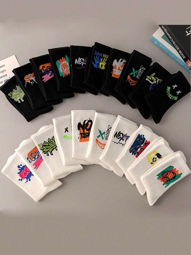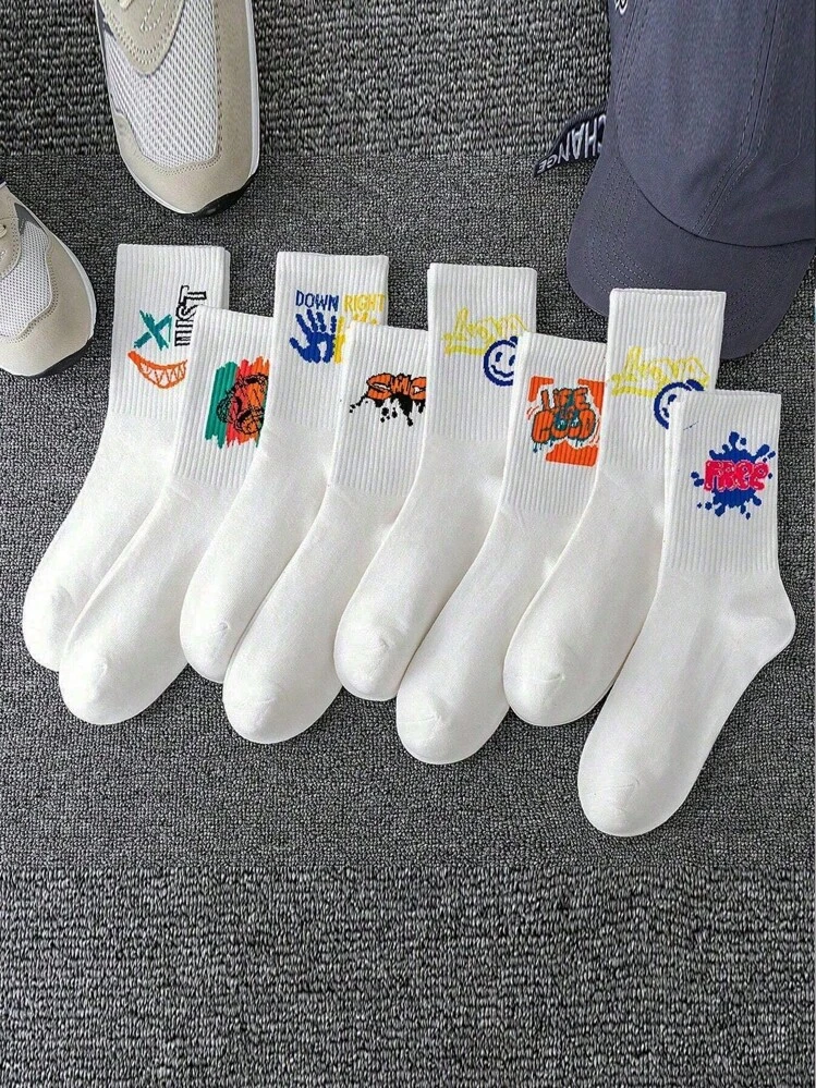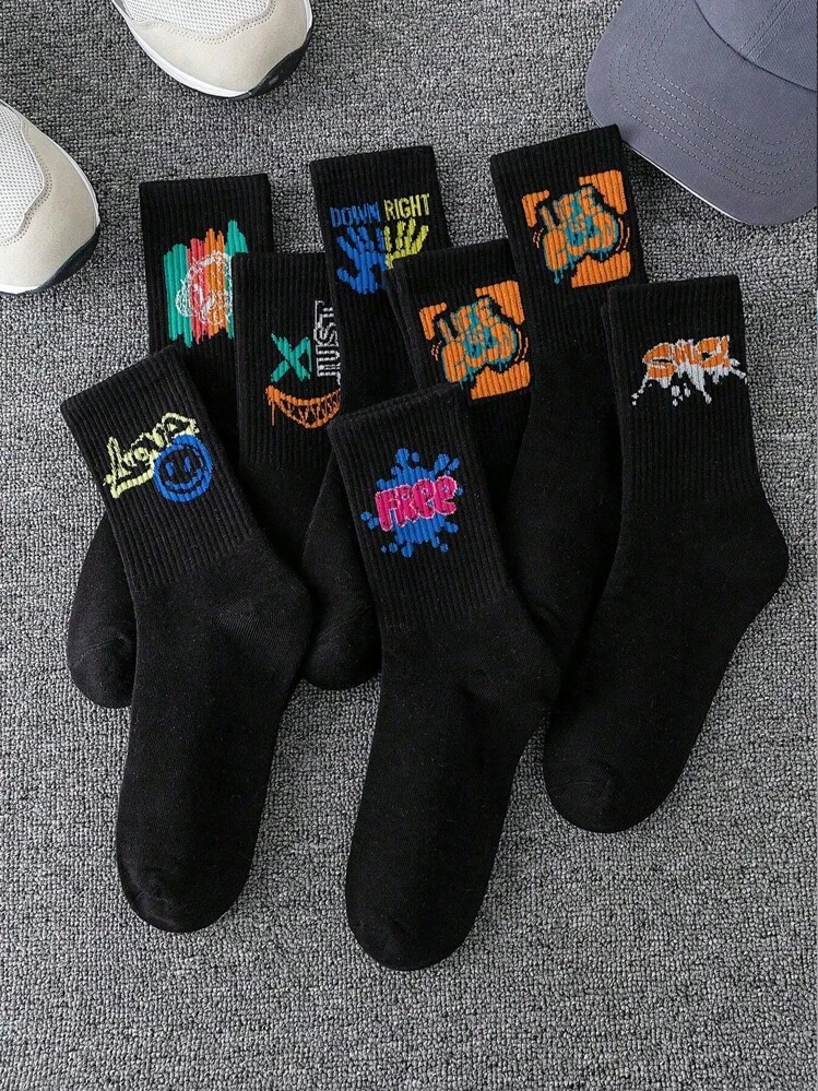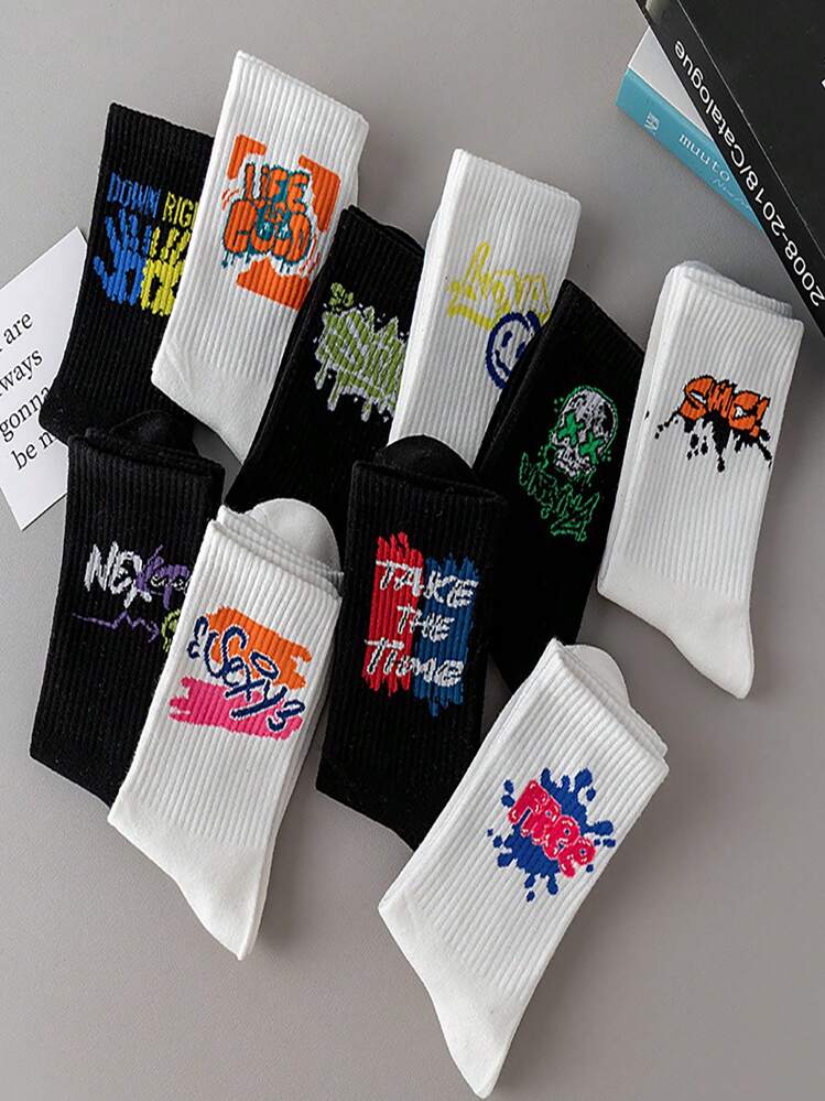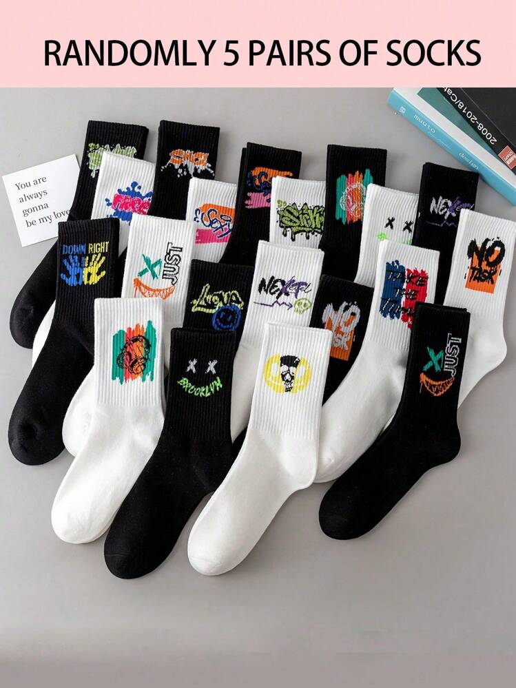 5 أزواج/مجموعة من جوارب رجالي عشوائية عصرية ذات طباعة، جوارب كاجوال رياضية مطبوعة برسومات الجرافيتي