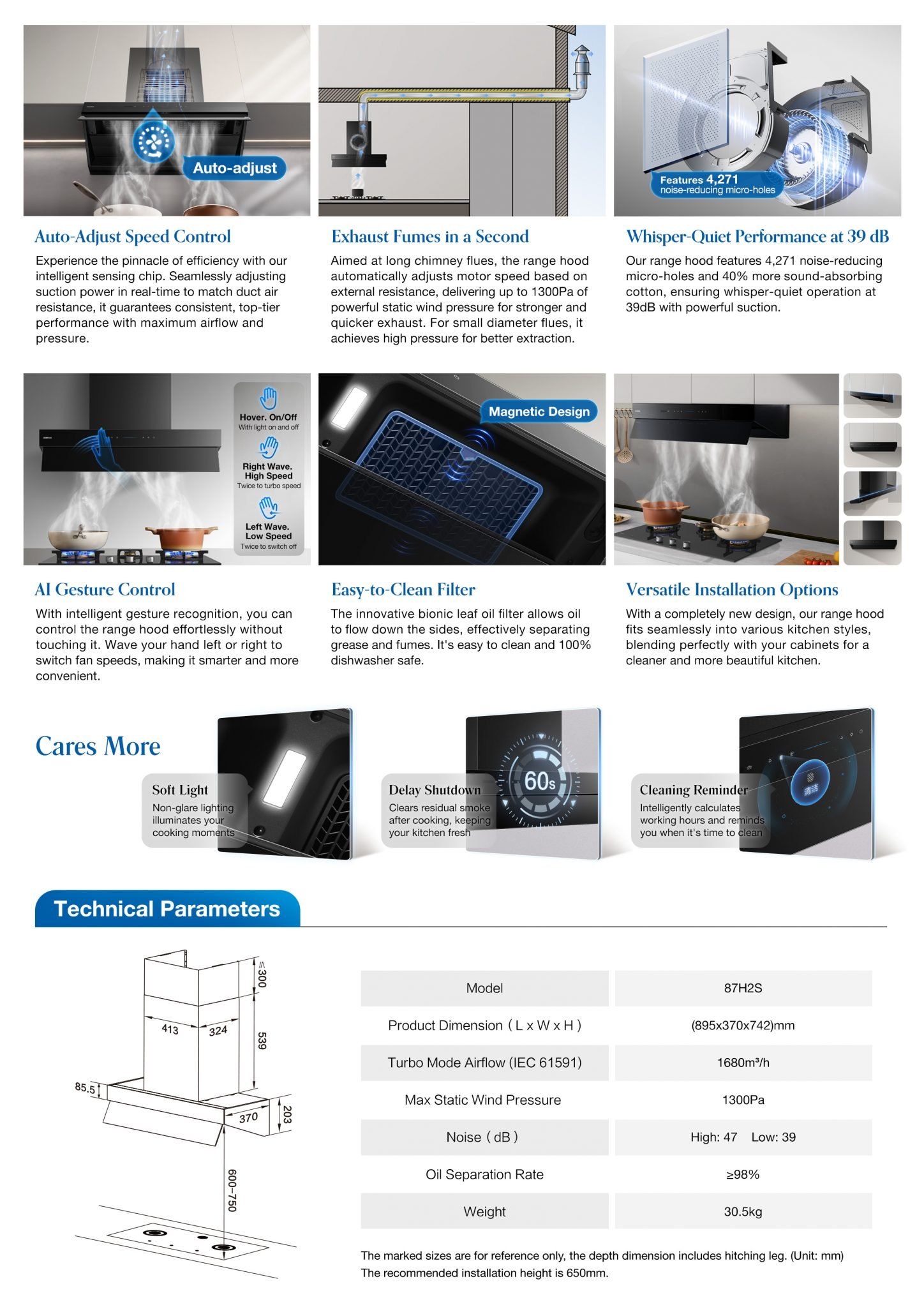 شفاط روبام مقاس 90 سم بقوة شفط 1680متر مكعب / ساعه موديل 87H2S