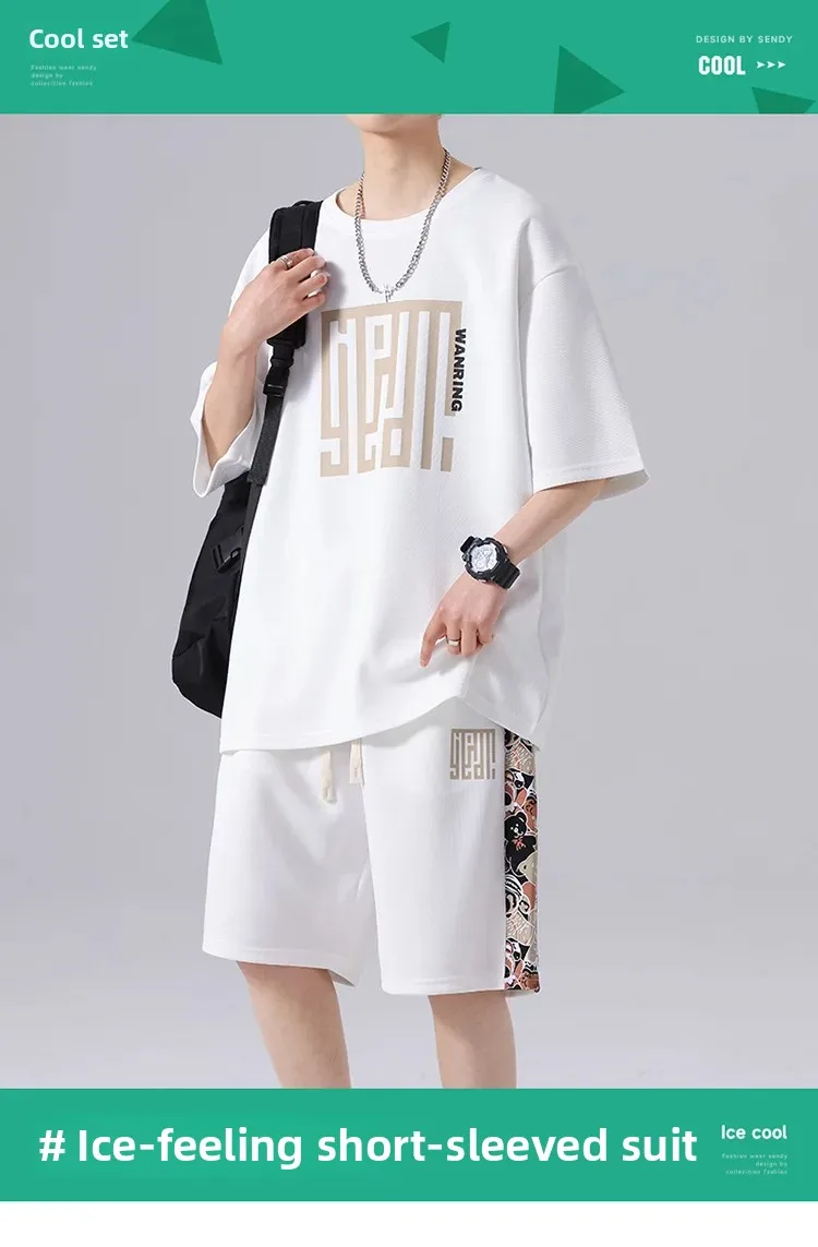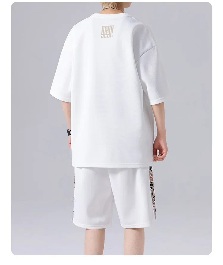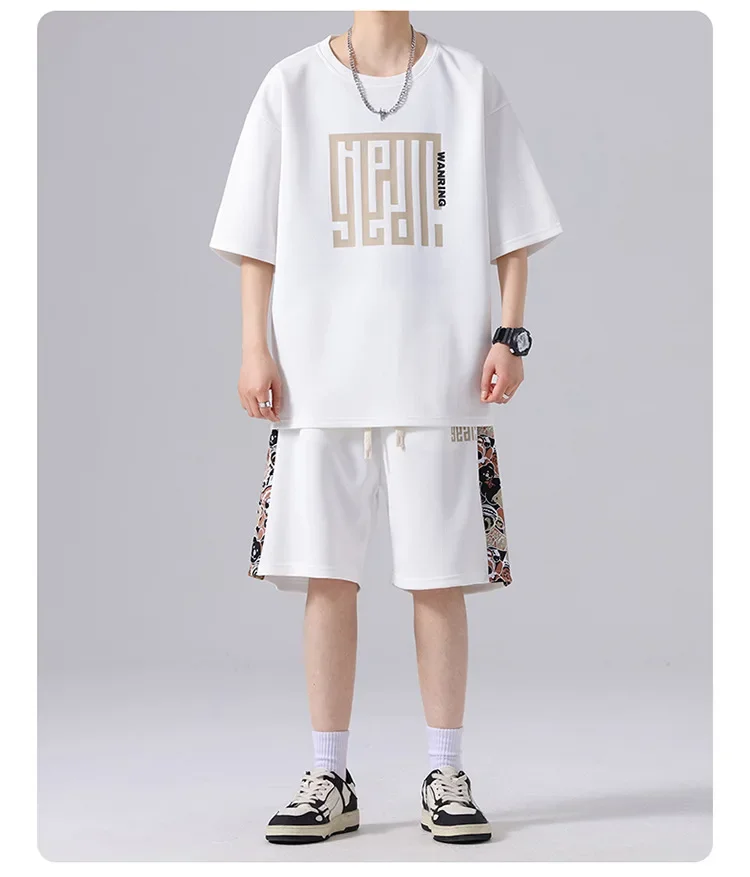 ربيع صيف جديد فضفاض عادية تنوعا قطعتين مجموعة العصرية الجولة الرقبة الرجال ملابس رياضية تيشيرت بأكمام قصيرة ملابس الطالب